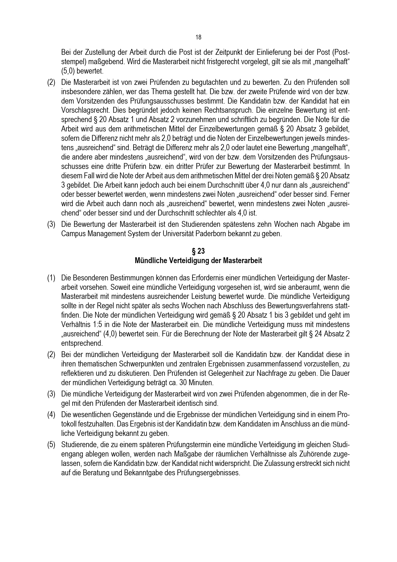 § 23 Mündliche Verteidigung der Masterarbeit