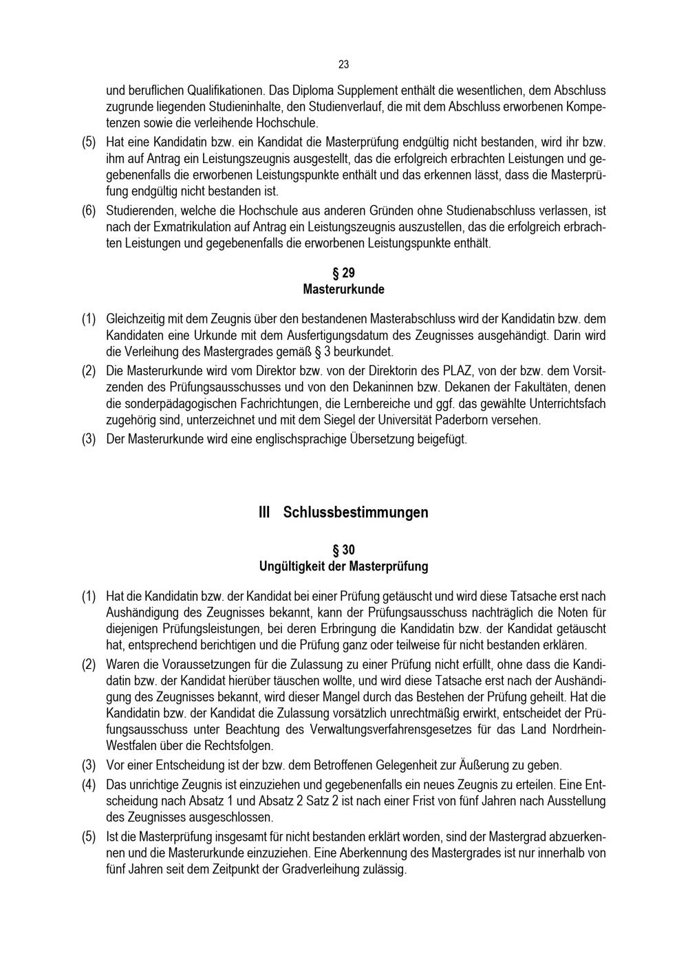 § 29 Masterurkunde