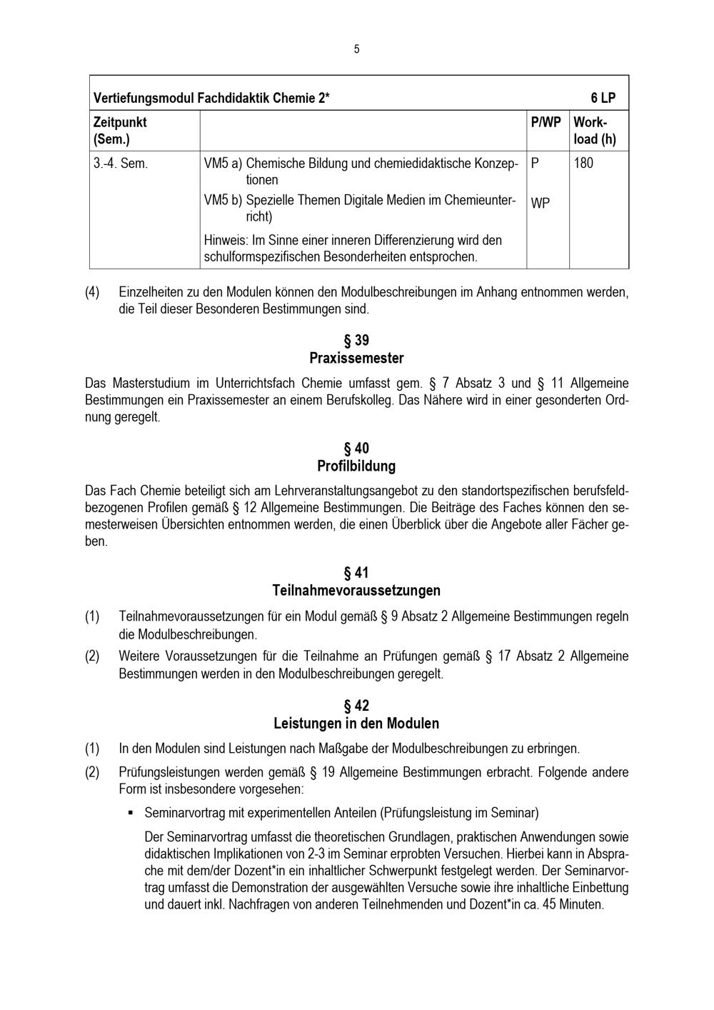 Besondere Bestimmungen der Prüfungsordnung für den Masterstudiengang Lehramt an Berufskollegs mit dem Unterrichtsfach Chemie an der Universität Paderborn : vom 31. Mai 2022