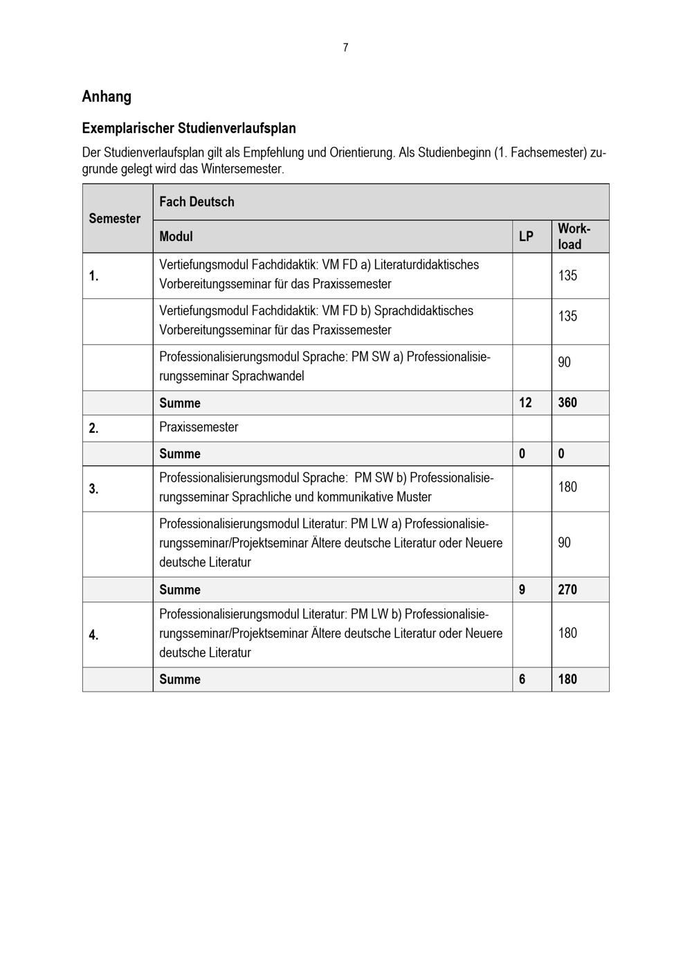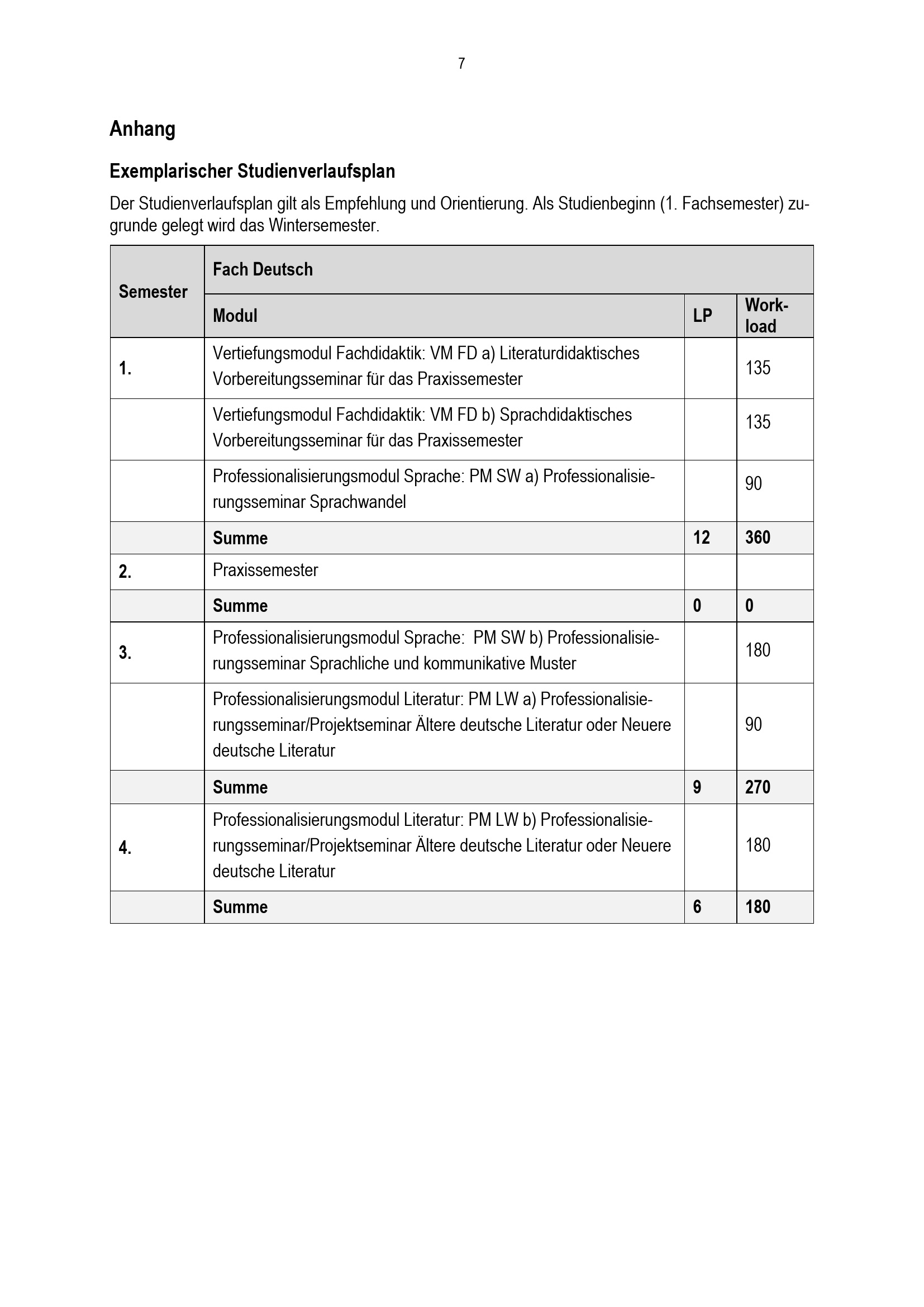 Der Studienverlaufsplan gilt als Empfehlung und Orientierung. Als Studienbeginn (1. Fachsemester) zugrunde gelegt wird das Wintersemester.