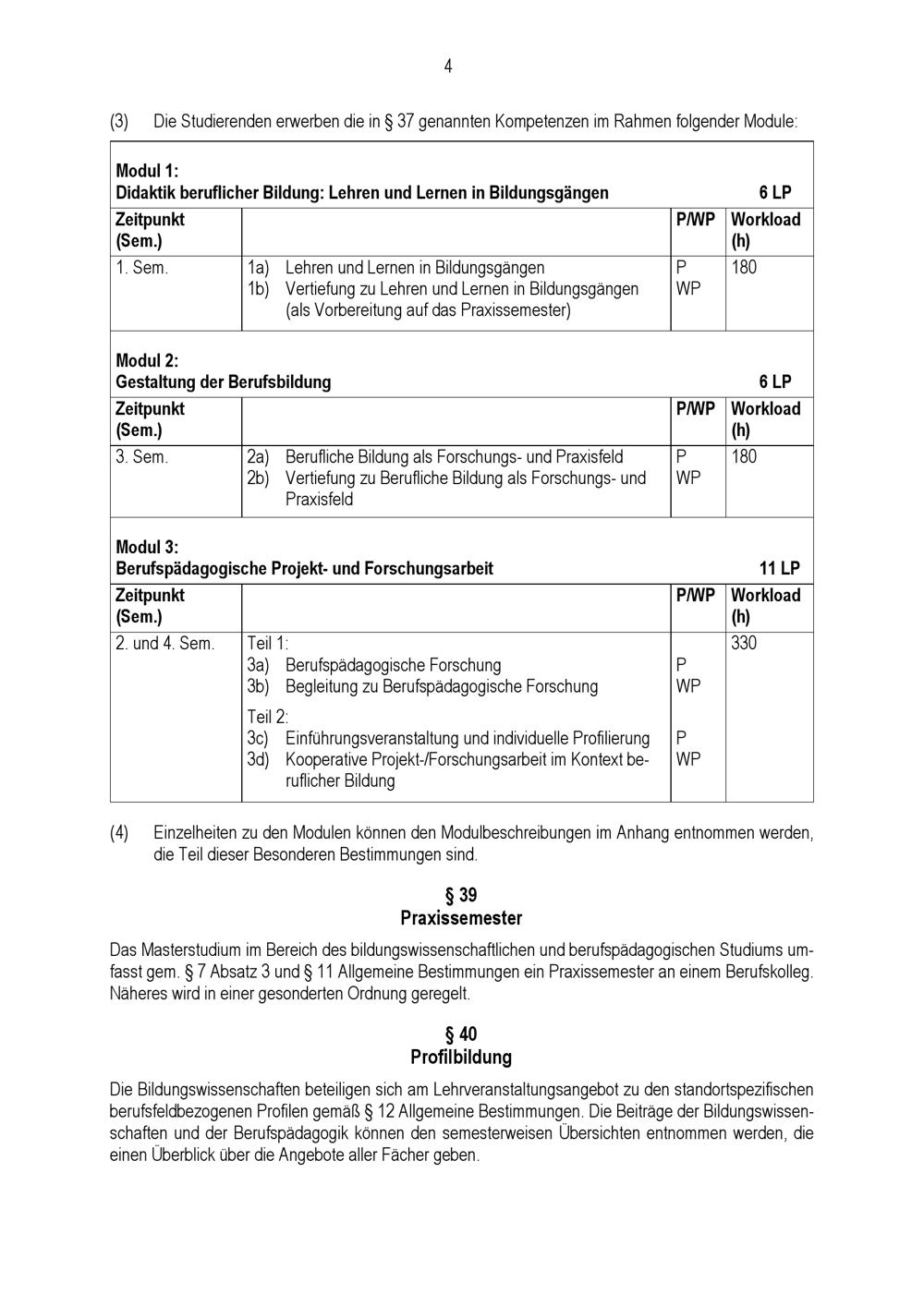 Besondere Bestimmungen der Prüfungsordnung für den Masterstudiengang Lehramt an Berufskollegs mit einer beruflichen Fachrichtung und einem Unterrichtsfach, mit zwei beruflichen Fachrichtungen, mit zwei Unterrichtsfächern oder mit einer Großen beruflichen Fachrichtung und einer Kleinen beruflichen Fachrichtung für das bildungswissenschaftliche und berufspädagogische Studium an der Universität Paderborn : vom 31. Mai 2022