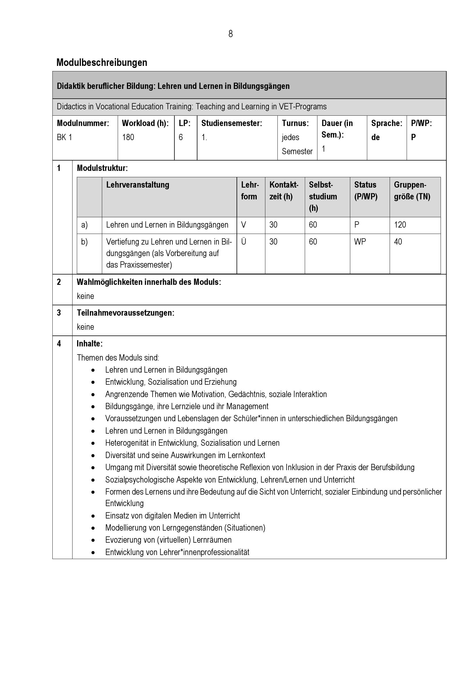 Besondere Bestimmungen der Prüfungsordnung für den Masterstudiengang Lehramt an Berufskollegs mit einer beruflichen Fachrichtung und einem Unterrichtsfach, mit zwei beruflichen Fachrichtungen, mit zwei Unterrichtsfächern oder mit einer Großen beruflichen Fachrichtung und einer Kleinen beruflichen Fachrichtung für das bildungswissenschaftliche und berufspädagogische Studium an der Universität Paderborn : vom 31. Mai 2022