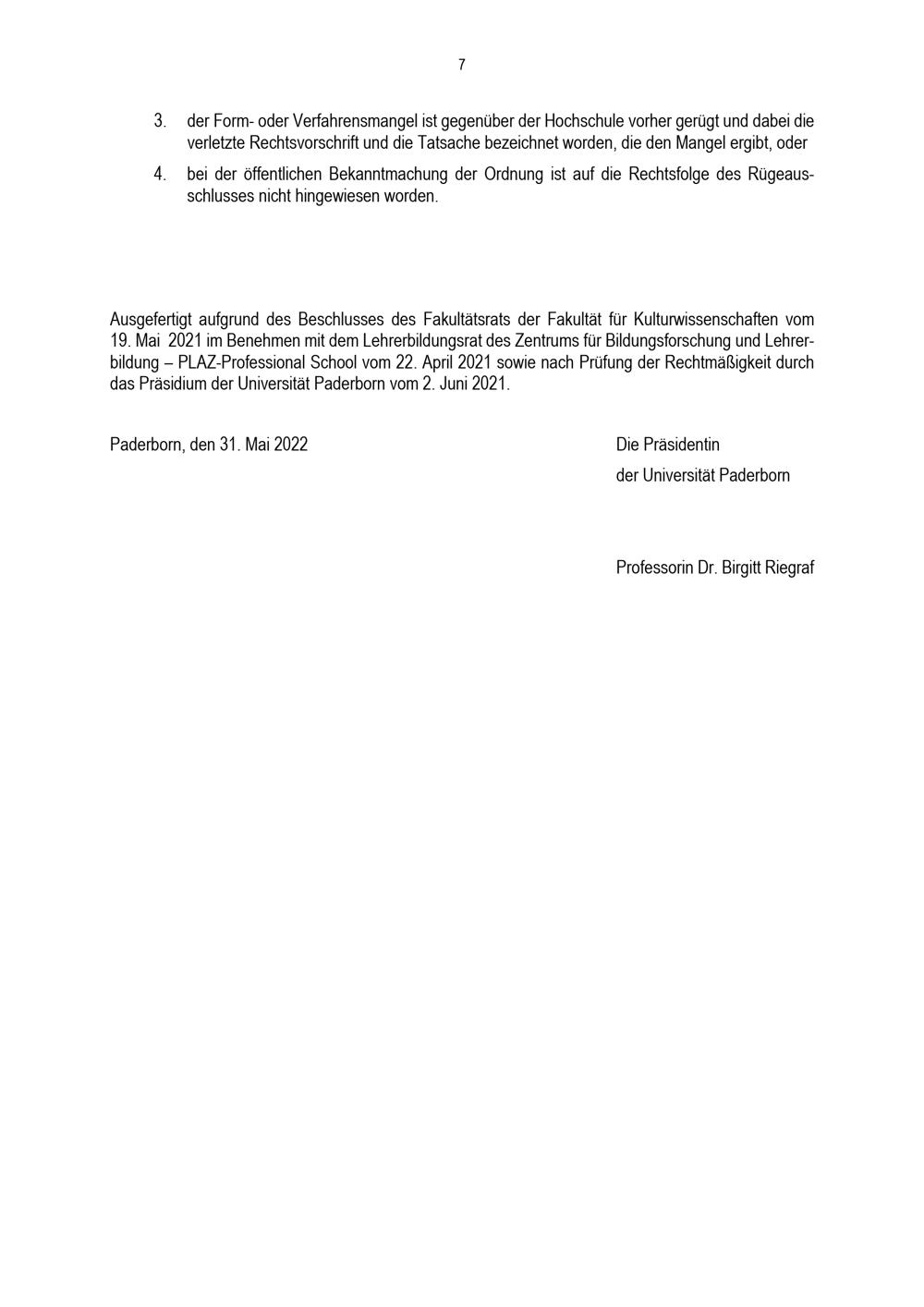 Besondere Bestimmungen der Prüfungsordnung für den Masterstudiengang Lehramt an Grundschulen mit dem Lernbereich Sprachliche Grundbildung an der Universität Paderborn : vom 31. Mai 2022