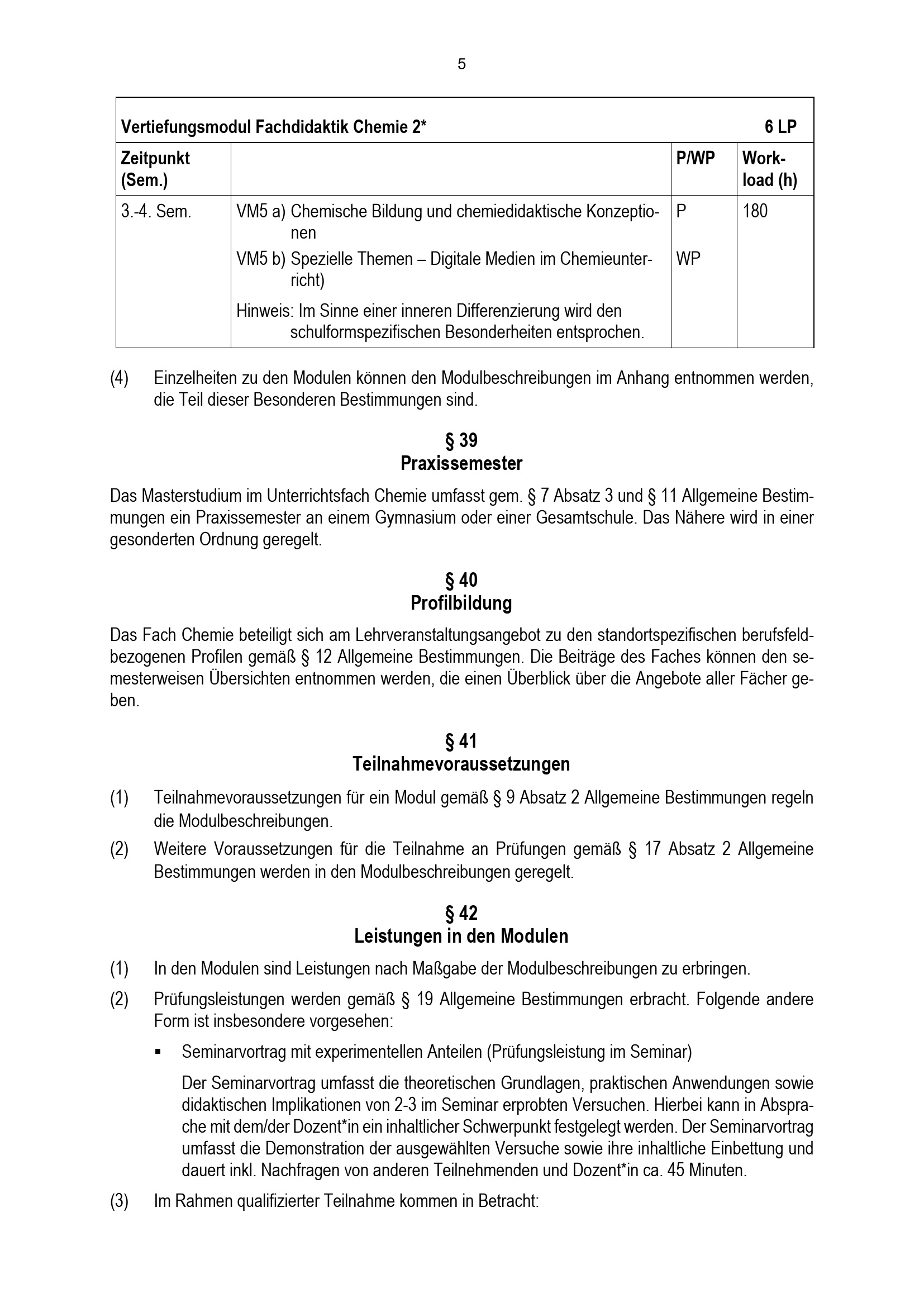 Besondere Bestimmungen der Prüfungsordnung für den Masterstudiengang Lehramt an Gymnasien und Gesamtschulen mit dem Unterrichtsfach Chemie an der Universität Paderborn : vom 31. Mai 2022