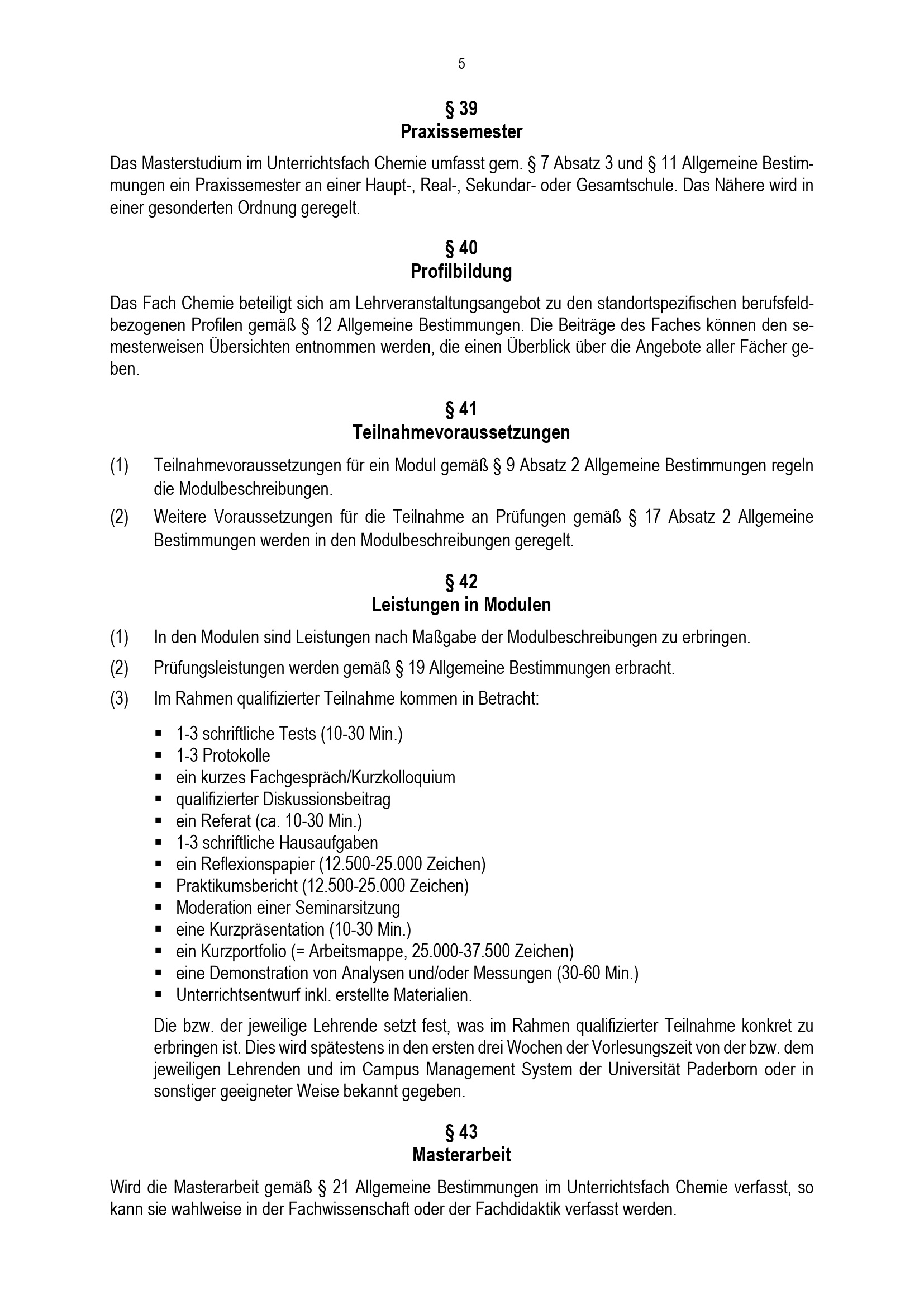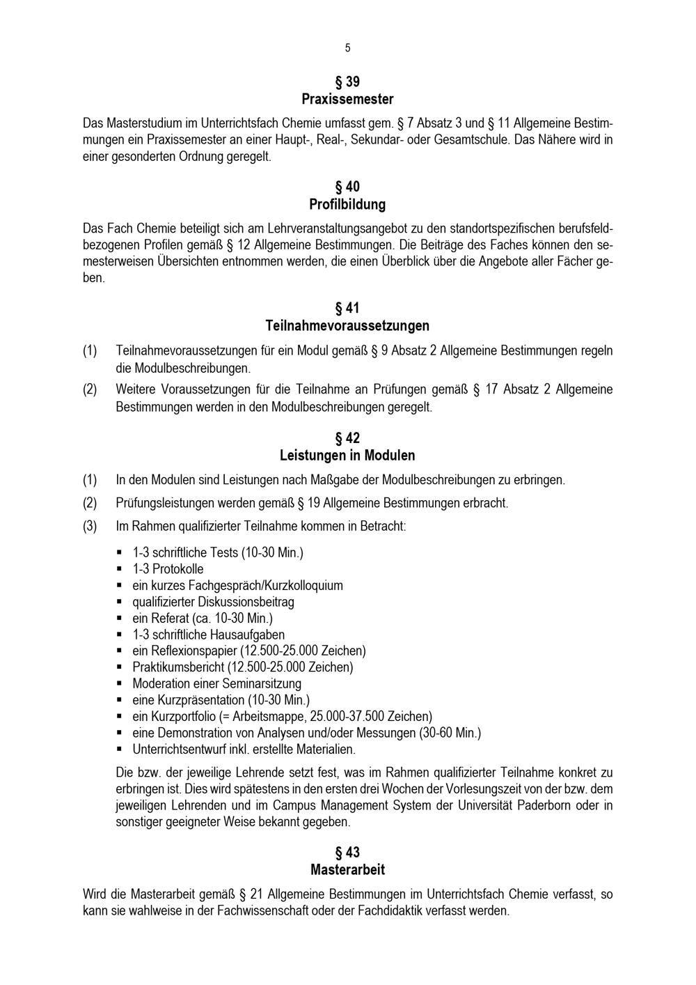 Besondere Bestimmungen der Prüfungsordnung für den Masterstudiengang Lehramt an Haupt-, Real-, Sekundar- und Gesamtschulen mit dem Unterrichtsfach Chemie an der Universität Paderborn : vom 31. Mai 2022
