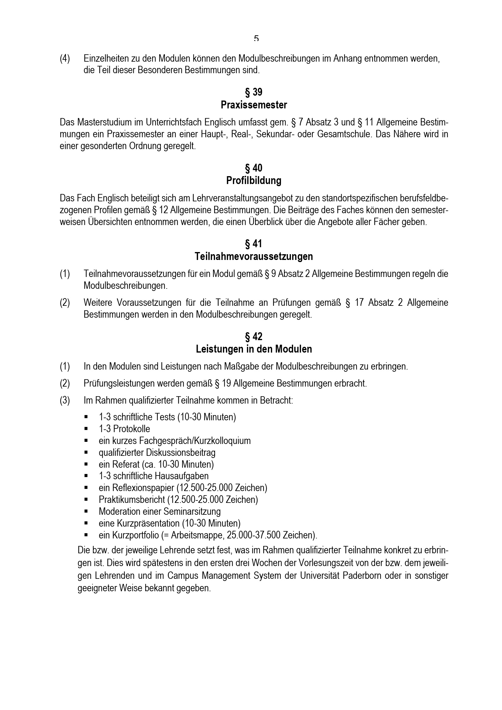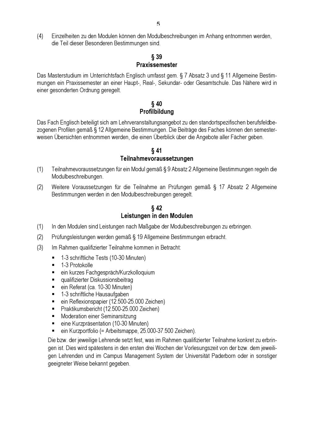 Besondere Bestimmungen der Prüfungsordnung für den Masterstudiengang Lehramt an Haupt-, Real-, Sekundar- und Gesamtschulen mit dem Unterrichtsfach Englisch an der Universität Paderborn : vom 31. Mai 2022