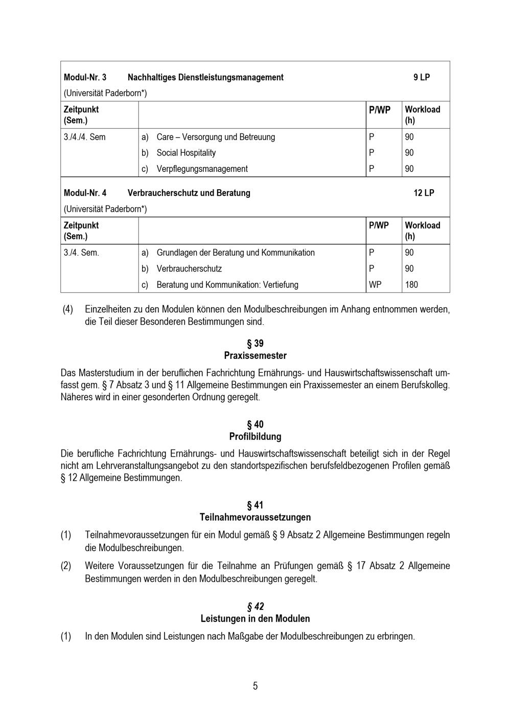 Besondere Bestimmungen der Prüfungsordnung für den Masterstudiengang Lehramt an Berufskollegs mit der beruflichen Fachrichtung Ernährungs- und Hauswirtschaftswissenschaft an der Universität Paderborn und der Technischen Hochschule Ostwestfalen-Lippe : vom 31. Mai 2022