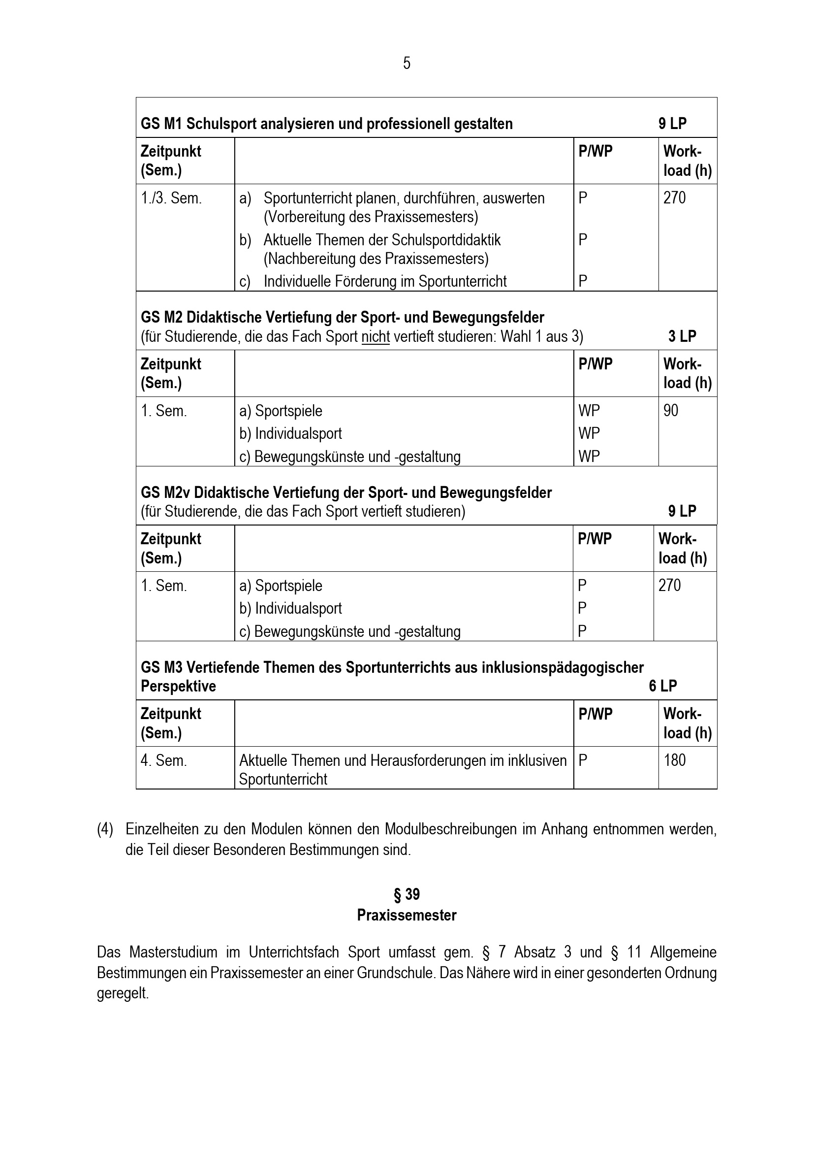 § 39 Praxissemester