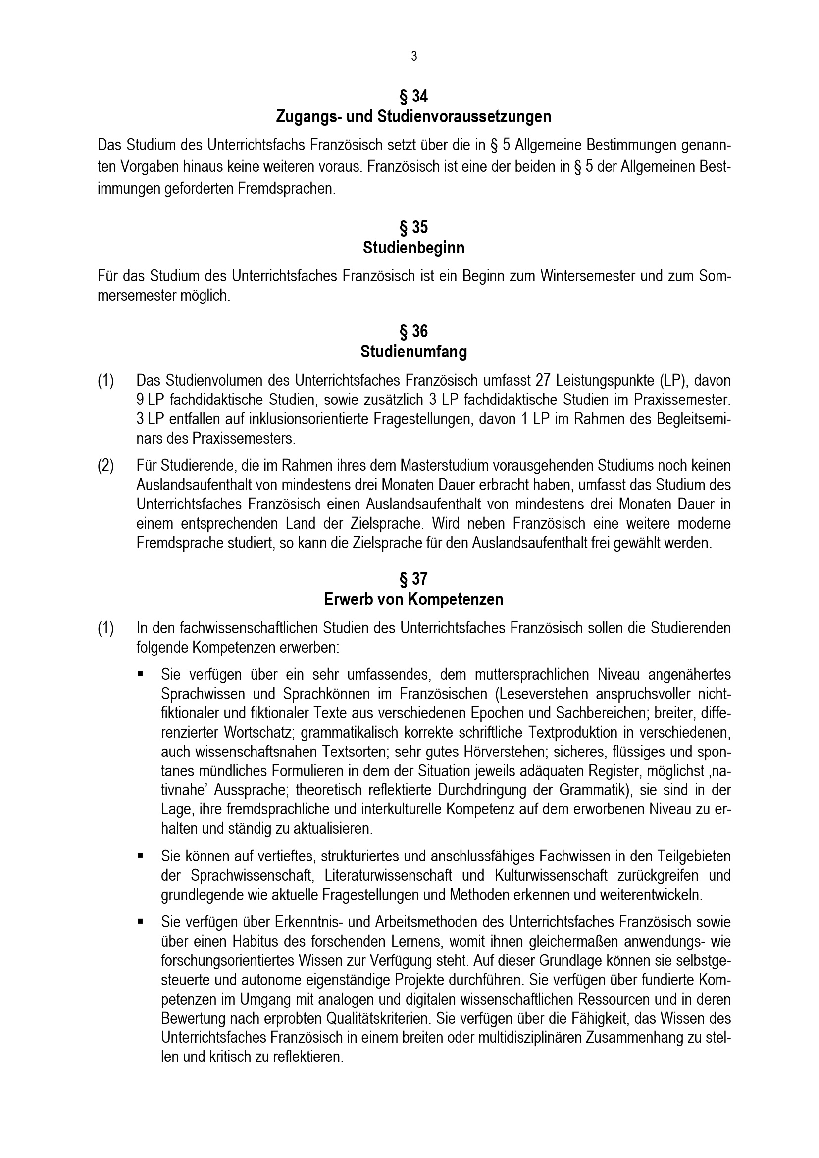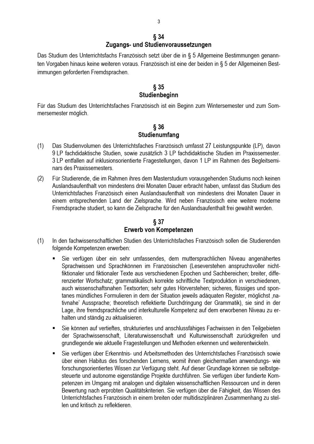 § 36 Studienumfang