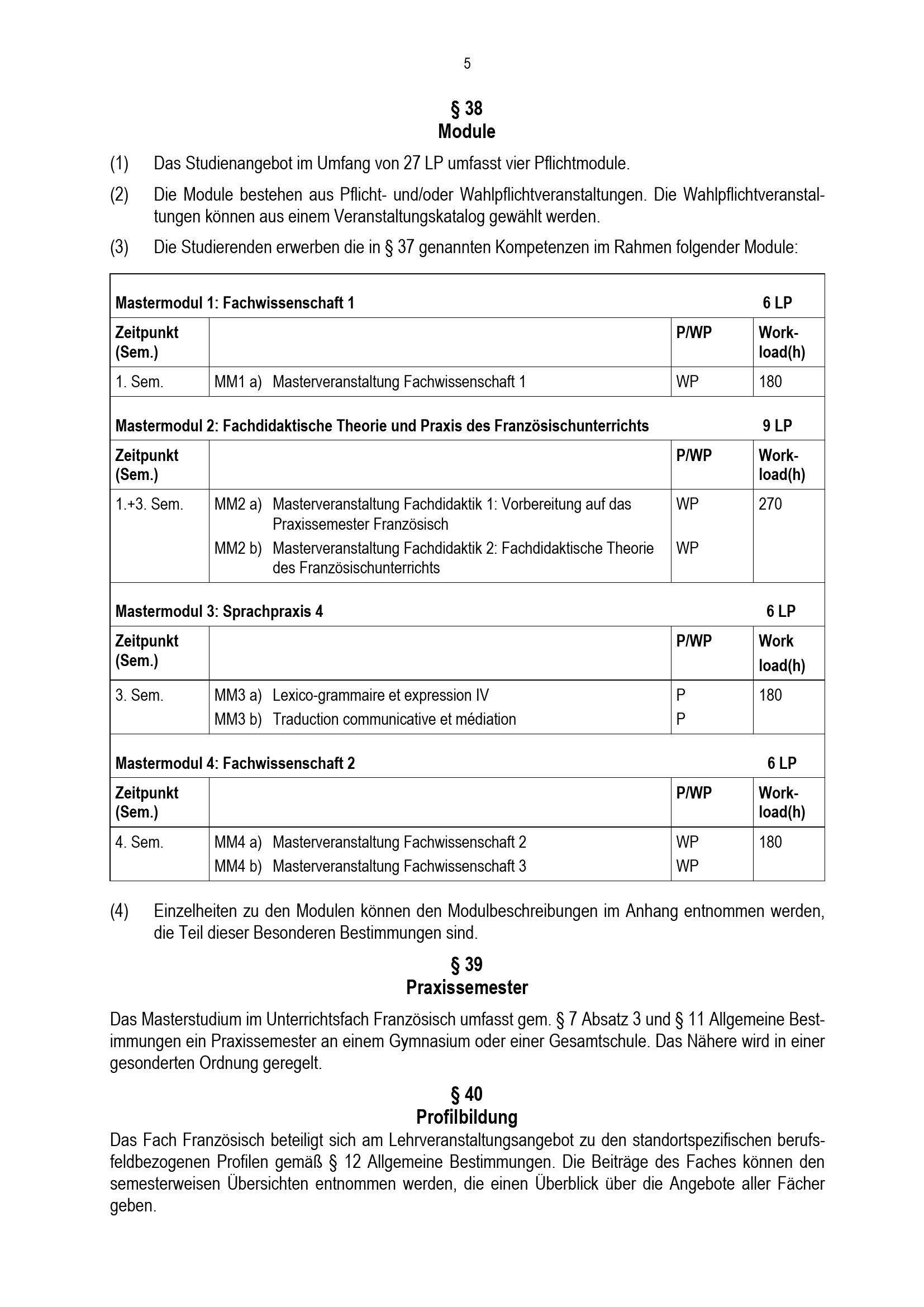 § 39 Praxissemester