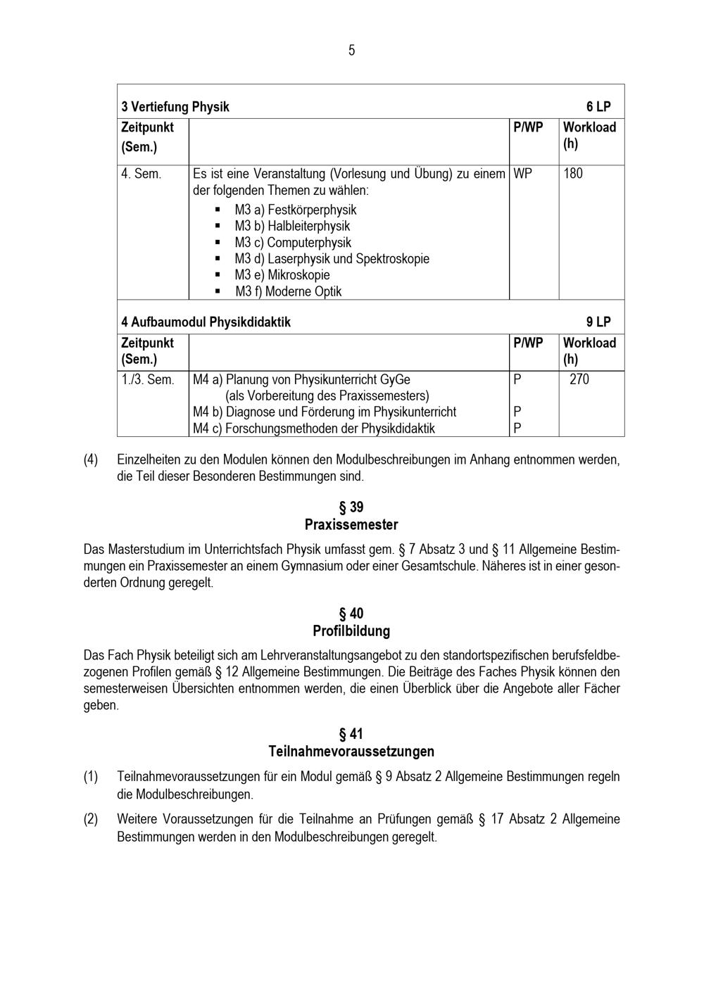 Besondere Bestimmungen der Prüfungsordnung für den Masterstudiengang Lehramt an Gymnasien und Gesamtschulen mit dem Unterrichtsfach Physik an der Universität Paderborn : vom 31. Mai 2022