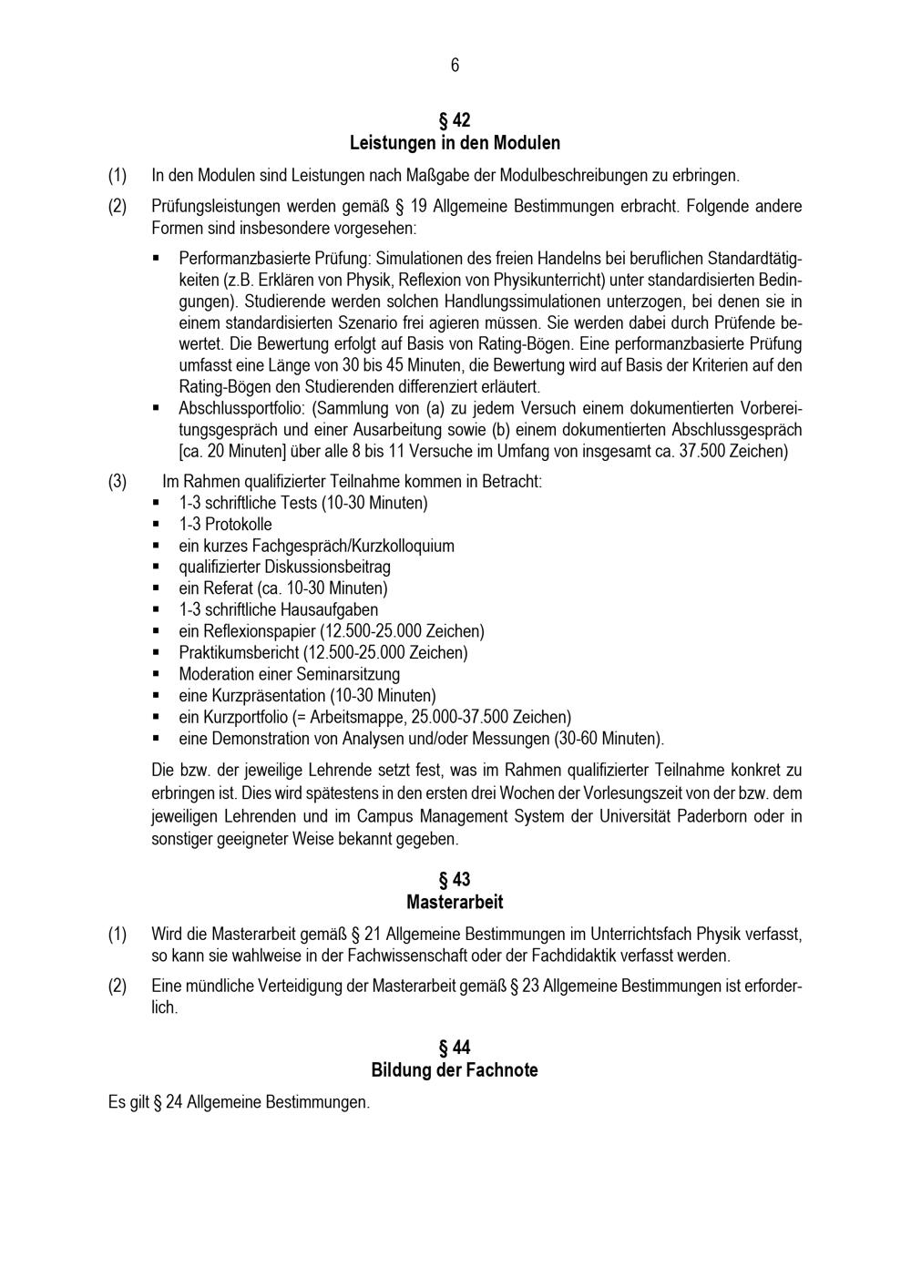 Besondere Bestimmungen der Prüfungsordnung für den Masterstudiengang Lehramt an Gymnasien und Gesamtschulen mit dem Unterrichtsfach Physik an der Universität Paderborn : vom 31. Mai 2022