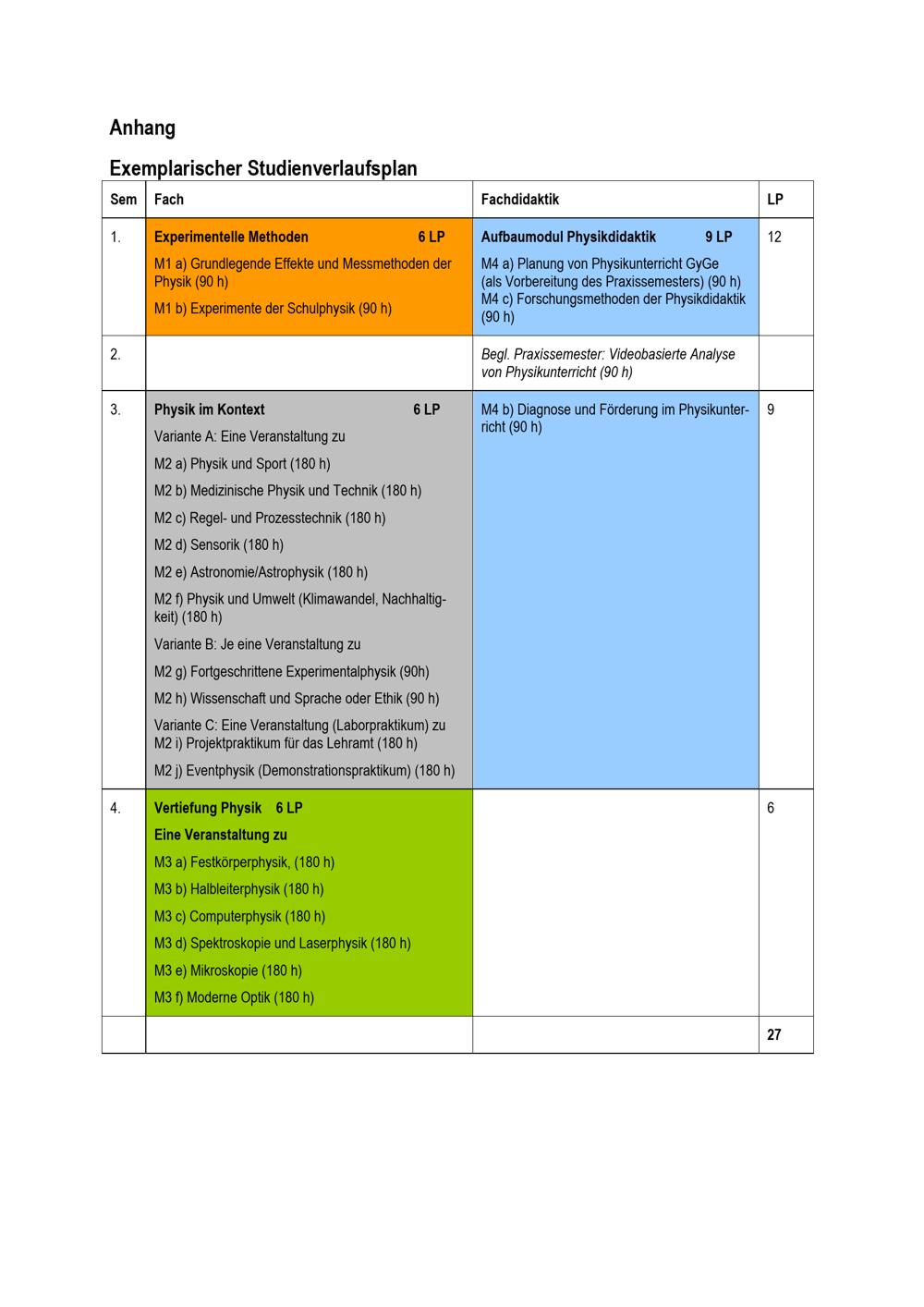 Exemplarischer Studienverlaufsplan