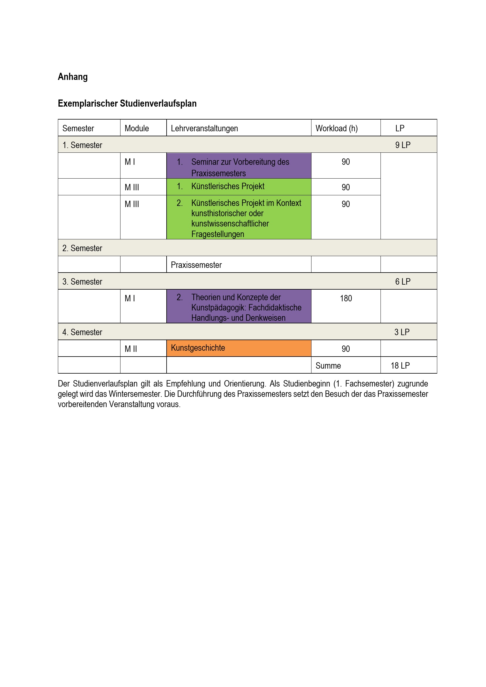 Exemplarischer Studienverlaufsplan