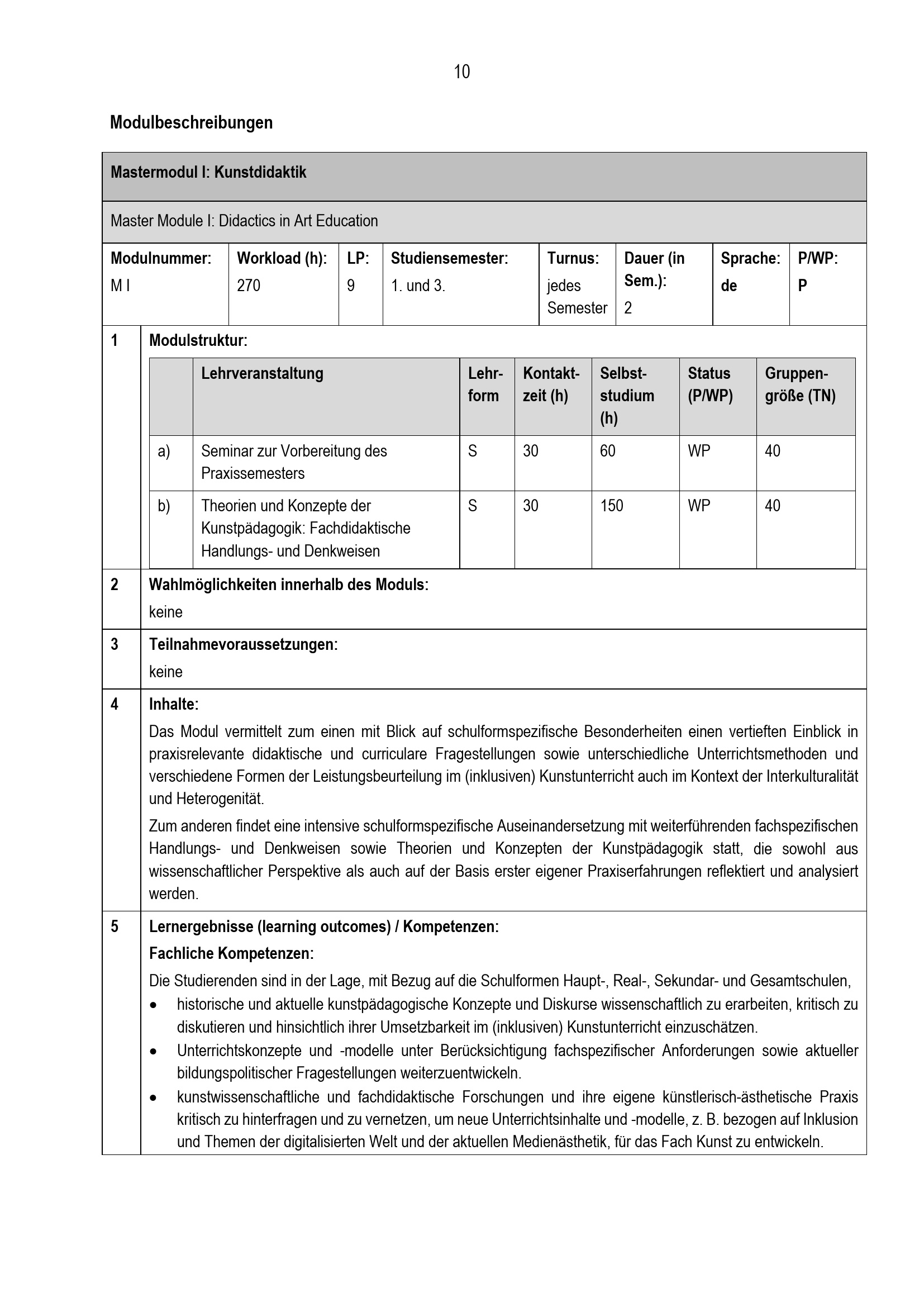 Besondere Bestimmungen der Prüfungsordnung für den Masterstudiengang Lehramt an Haupt-, Real-, Sekundar- und Gesamtschulen mit dem Unterrichtsfach Kunst an der Universität Paderborn : vom 31. Mai 2022
