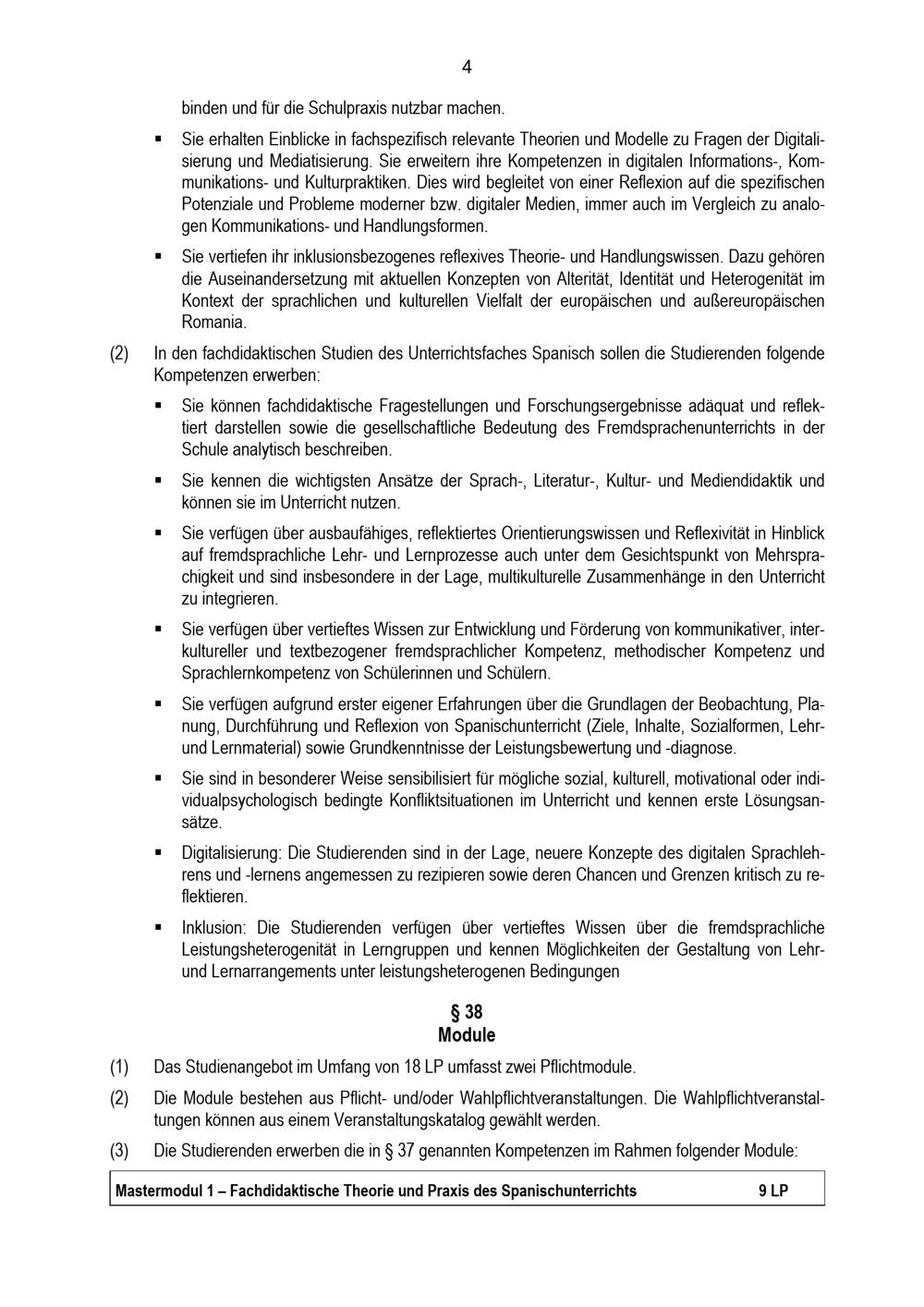 Besondere Bestimmungen der Prüfungsordnung für den Masterstudiengang Lehramt an Haupt-, Real-, Sekundar- und Gesamtschulen mit dem Unterrichtsfach Spanisch an der Universität Paderborn : vom 31. Mai 2022