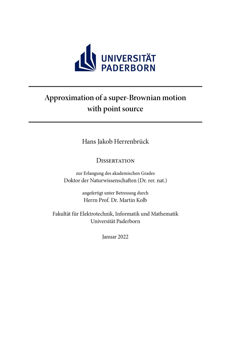 Approximation of a super-Brownian motion with point source / Hans Jakob Herrenbrück ; angefertigt unter Betreuung durch Herrn Prof. Dr. Martin Kolb