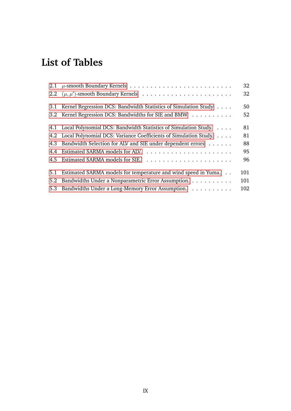 List of Tables