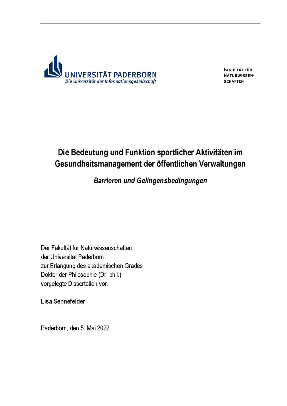 Die Bedeutung und Funktion sportlicher Aktivitäten im Gesundheitsmanagement der öffentlichen Verwaltungen : Barrieren und Gelingensbedingungen