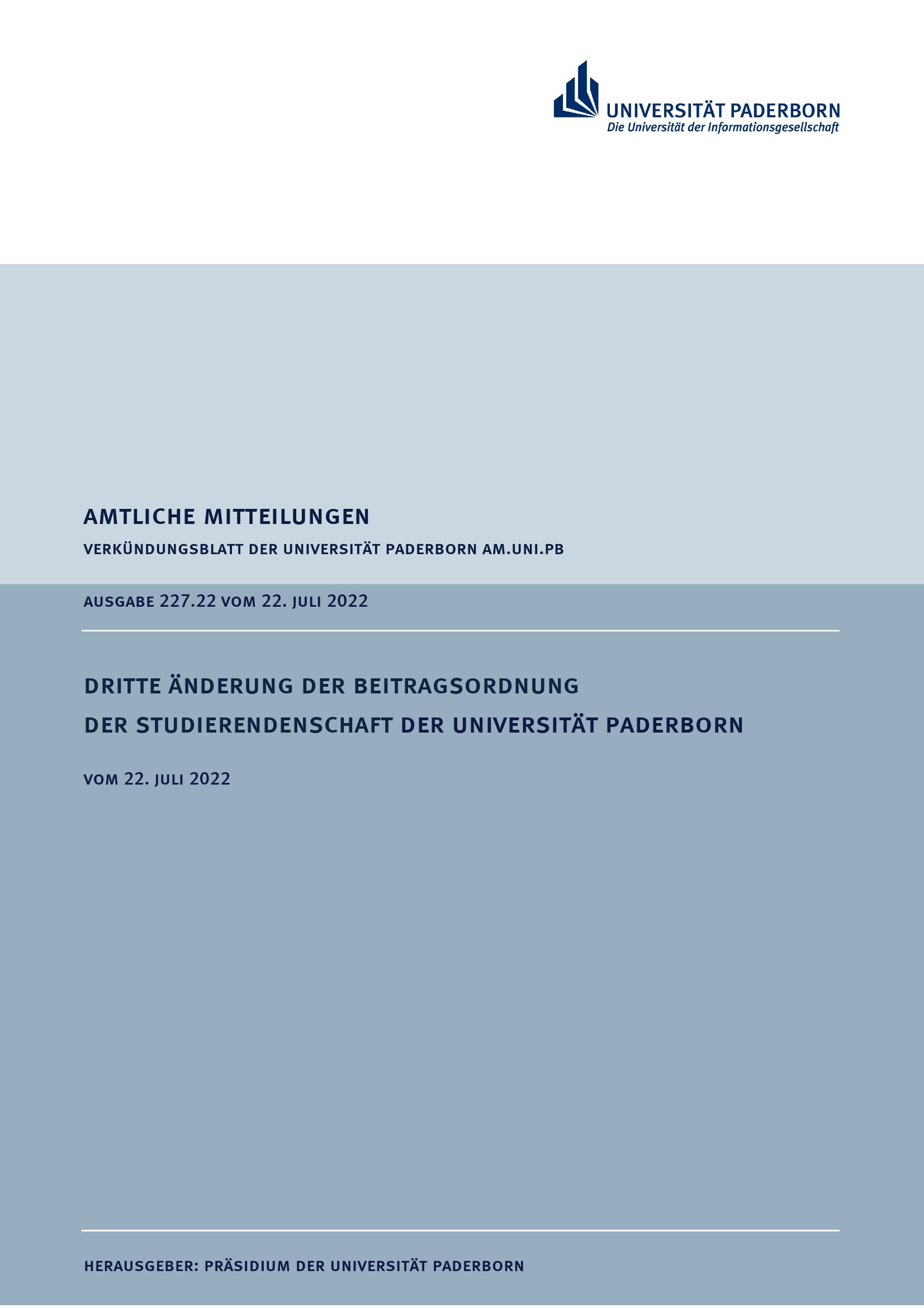 Dritte Änderung der Beitragsordnung der Studierendenschaft der Universität Paderborn : vom 22. Juli 2022