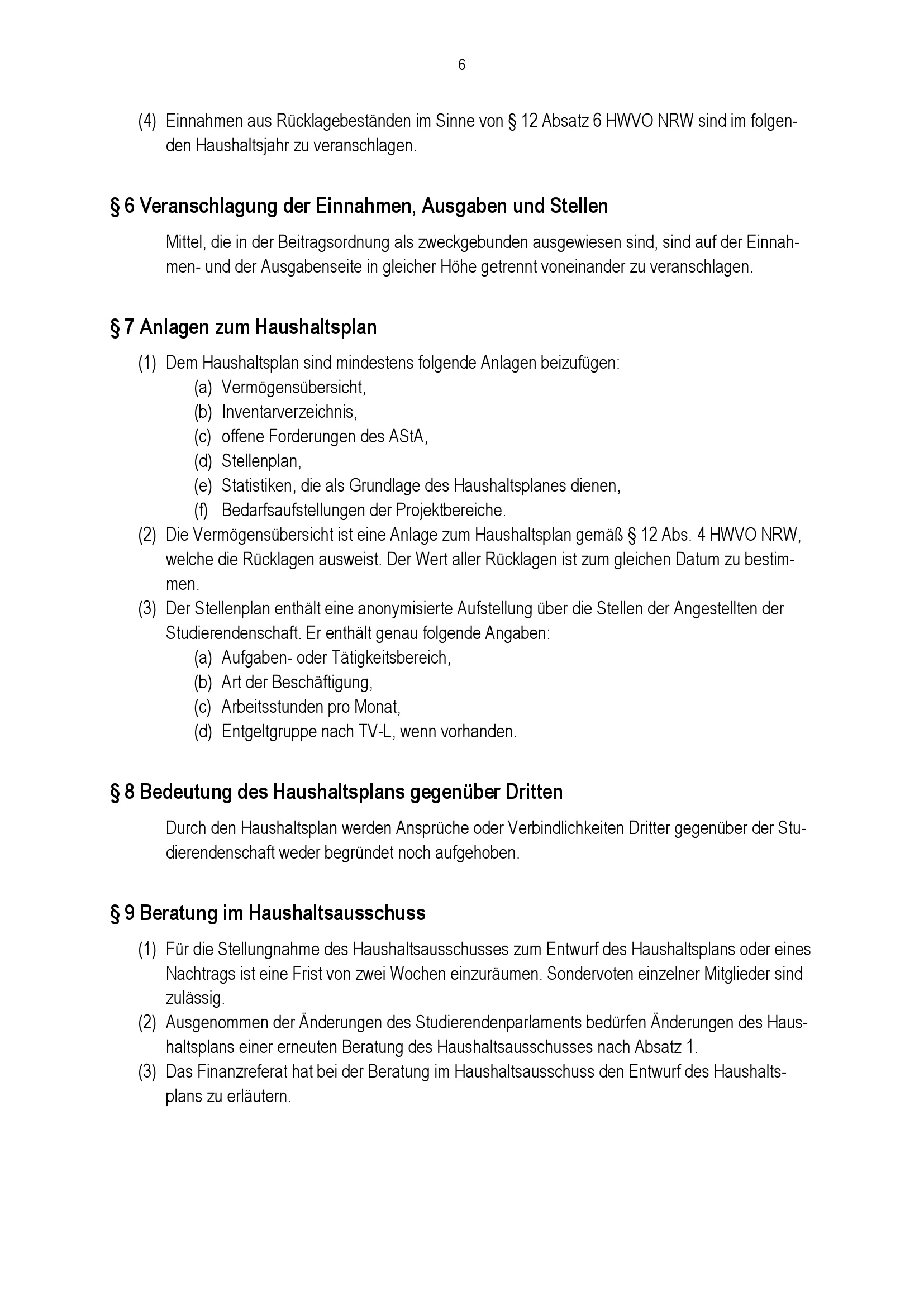 § 6 Veranschlagung der Einnahmen, Ausgaben und Stellen