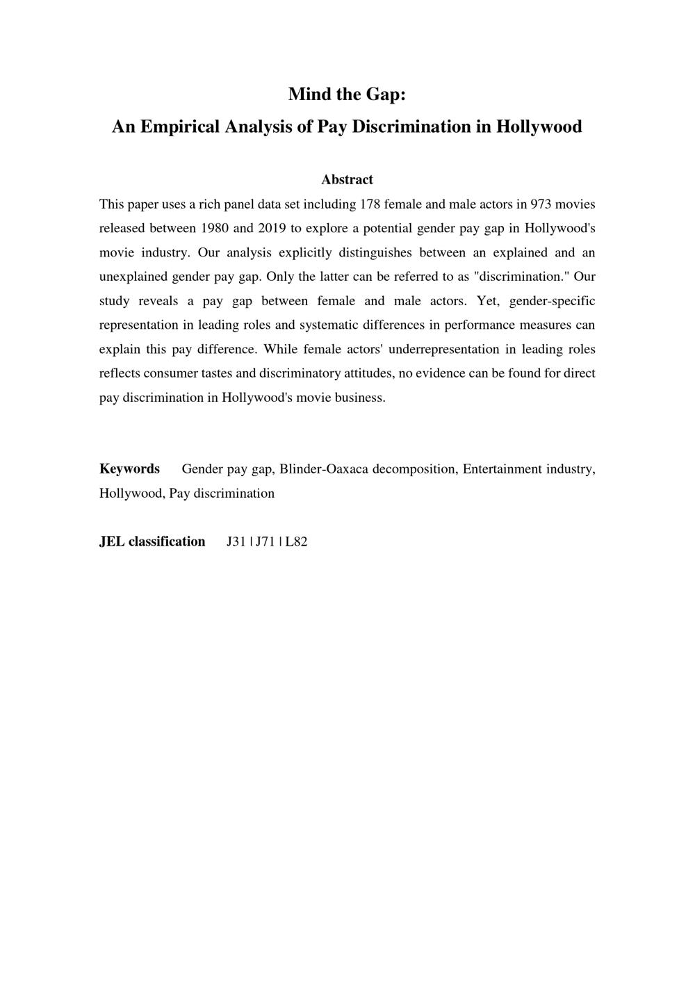 Mind the gap : an empirical analysis of pay discrimination in Hollywood / Charlotte Kräfft