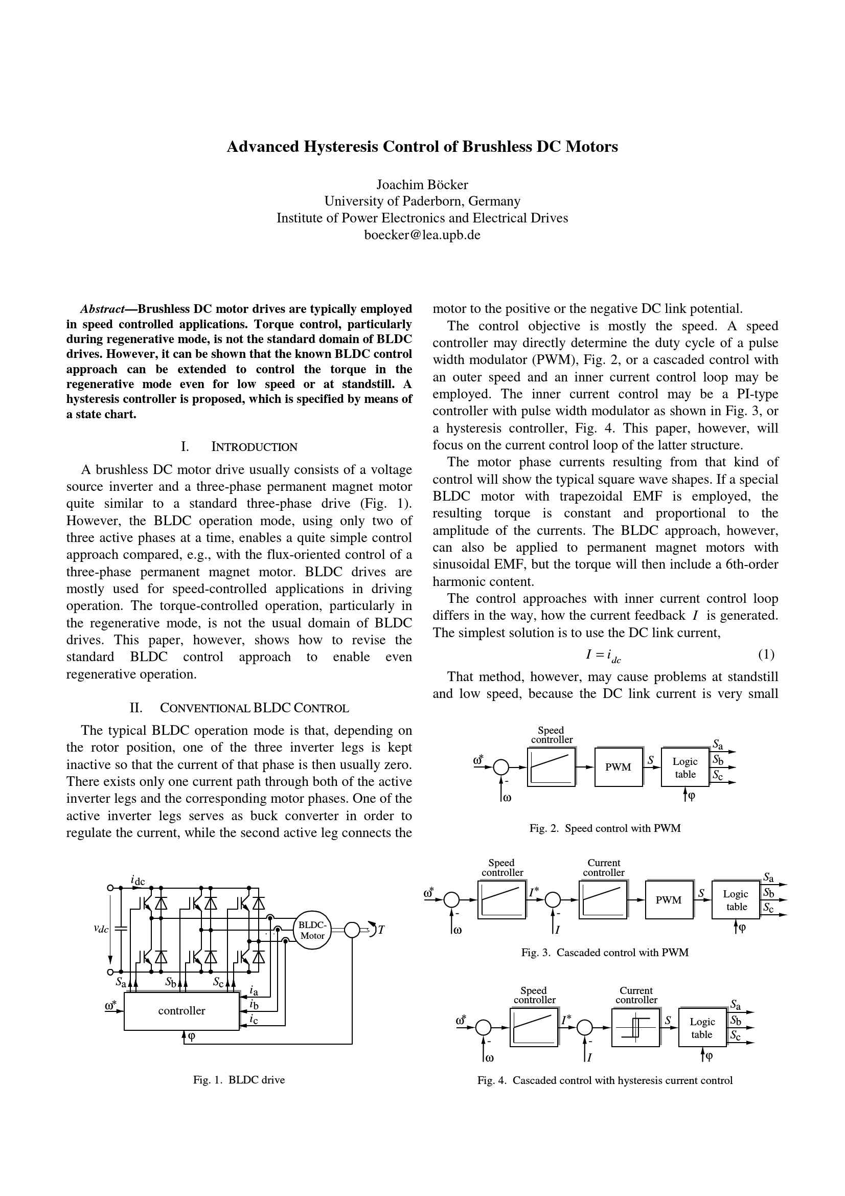 Advanced hysteresis control of brushless DC Motors / Joachim Böcker