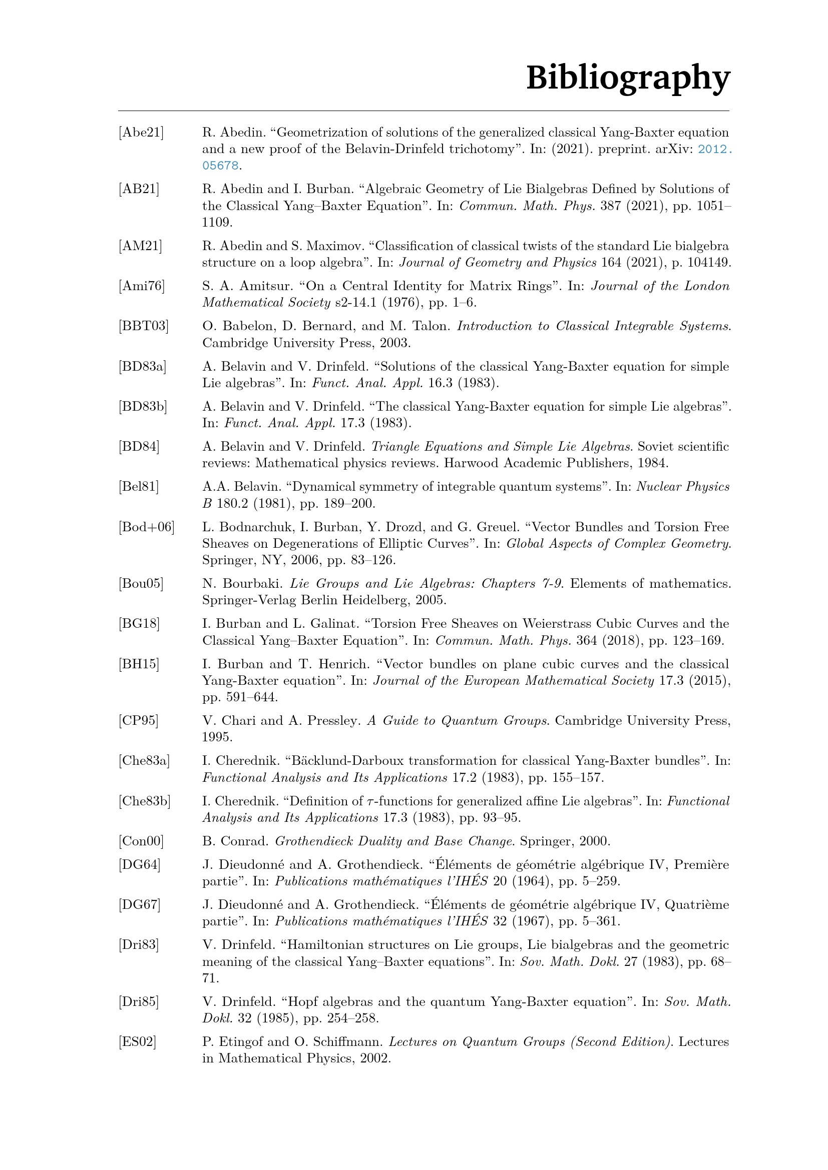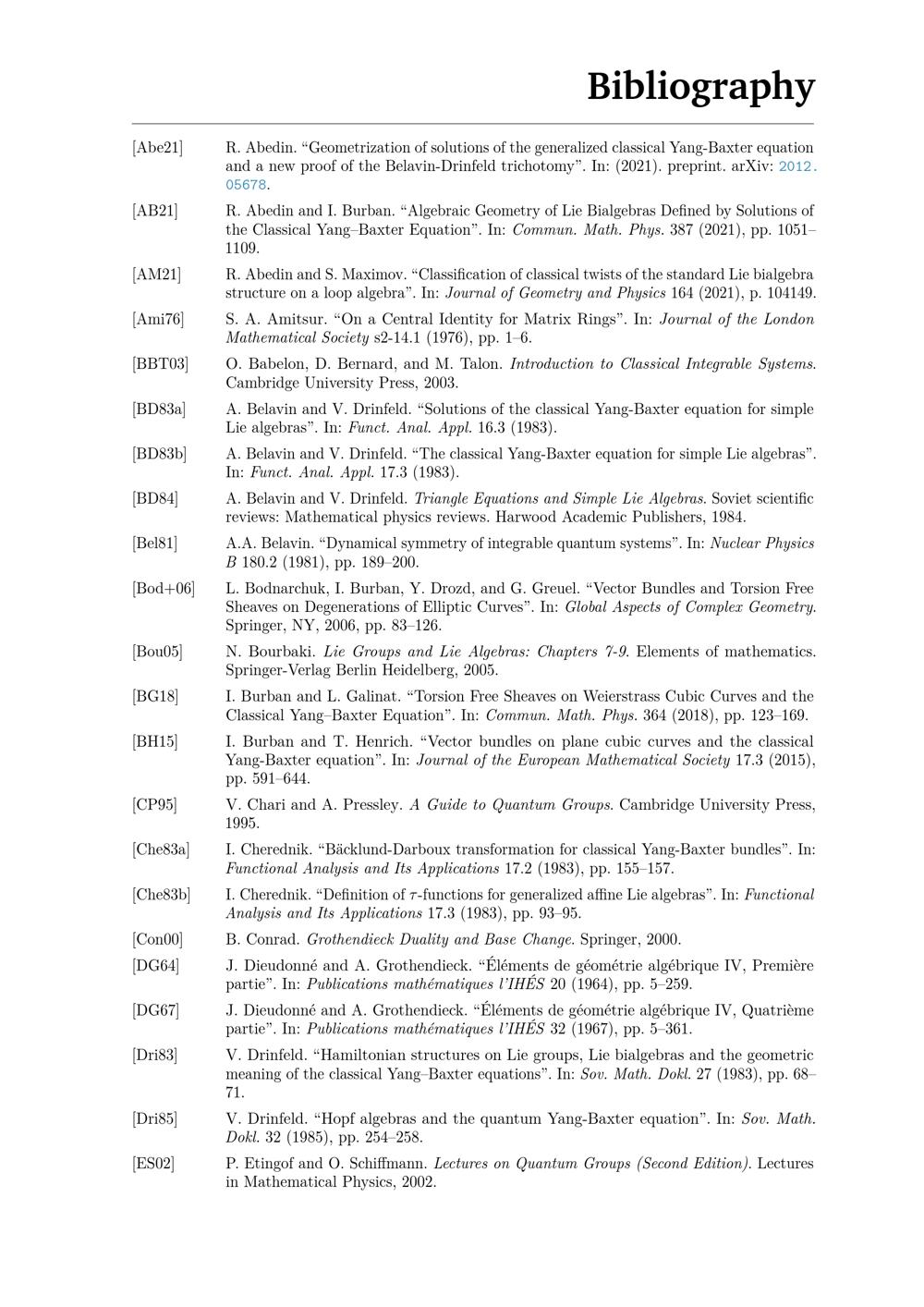 Algebraic geometry of the classical Yang-Baxter equation and its generalizations / von Raschid Abedin