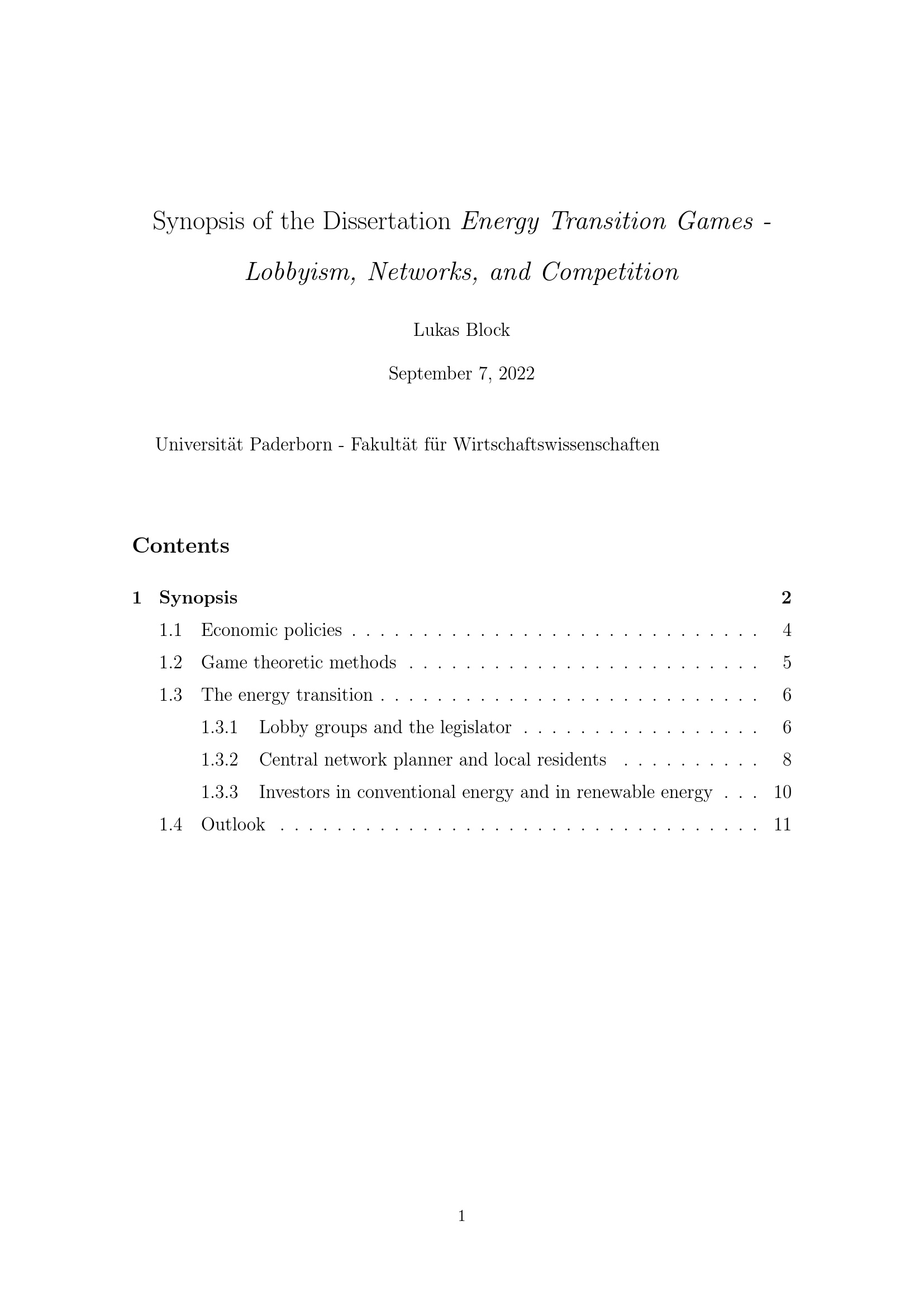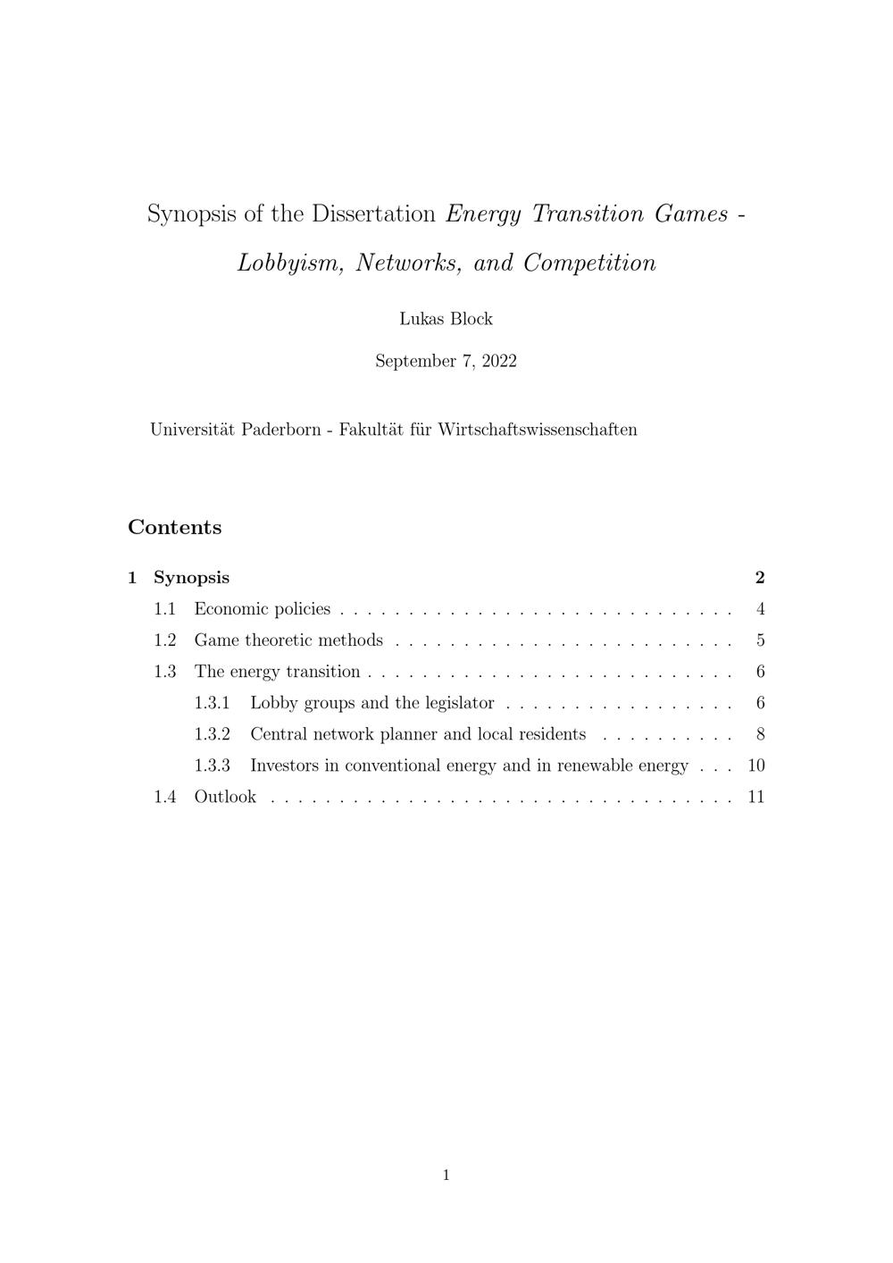 Energy transition games : lobbyism, networks, and competition / Lukas Block