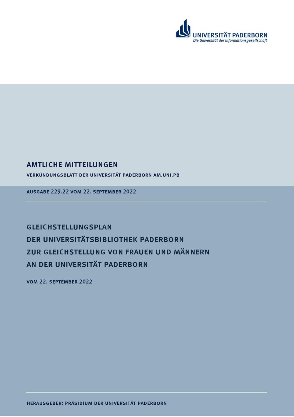 Gleichstellungsplan der Universitätsbibliothek Paderborn zur Gleichstellung von Frauen und Männern an der Universität Paderborn : vom 22. September 2022