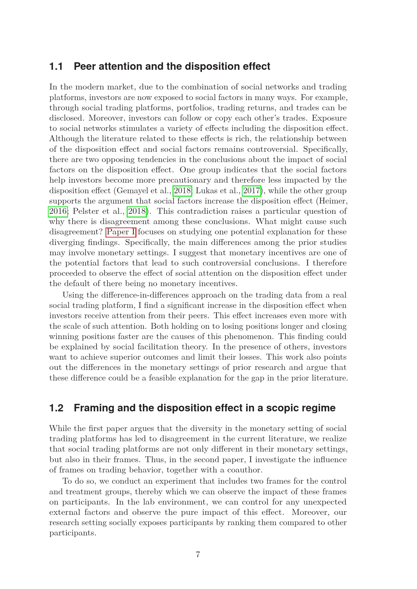 Essays on the disposition effect in a social environment
