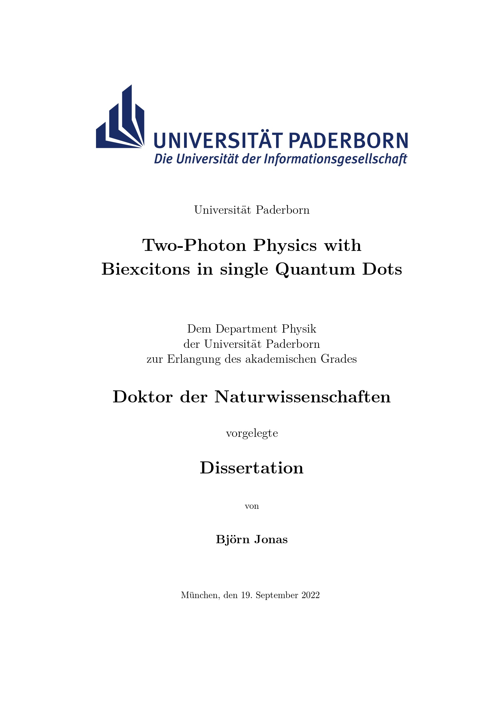 Two-Photon Physics with Biexcitons in single Quantum Dots / von Björn Jonas
