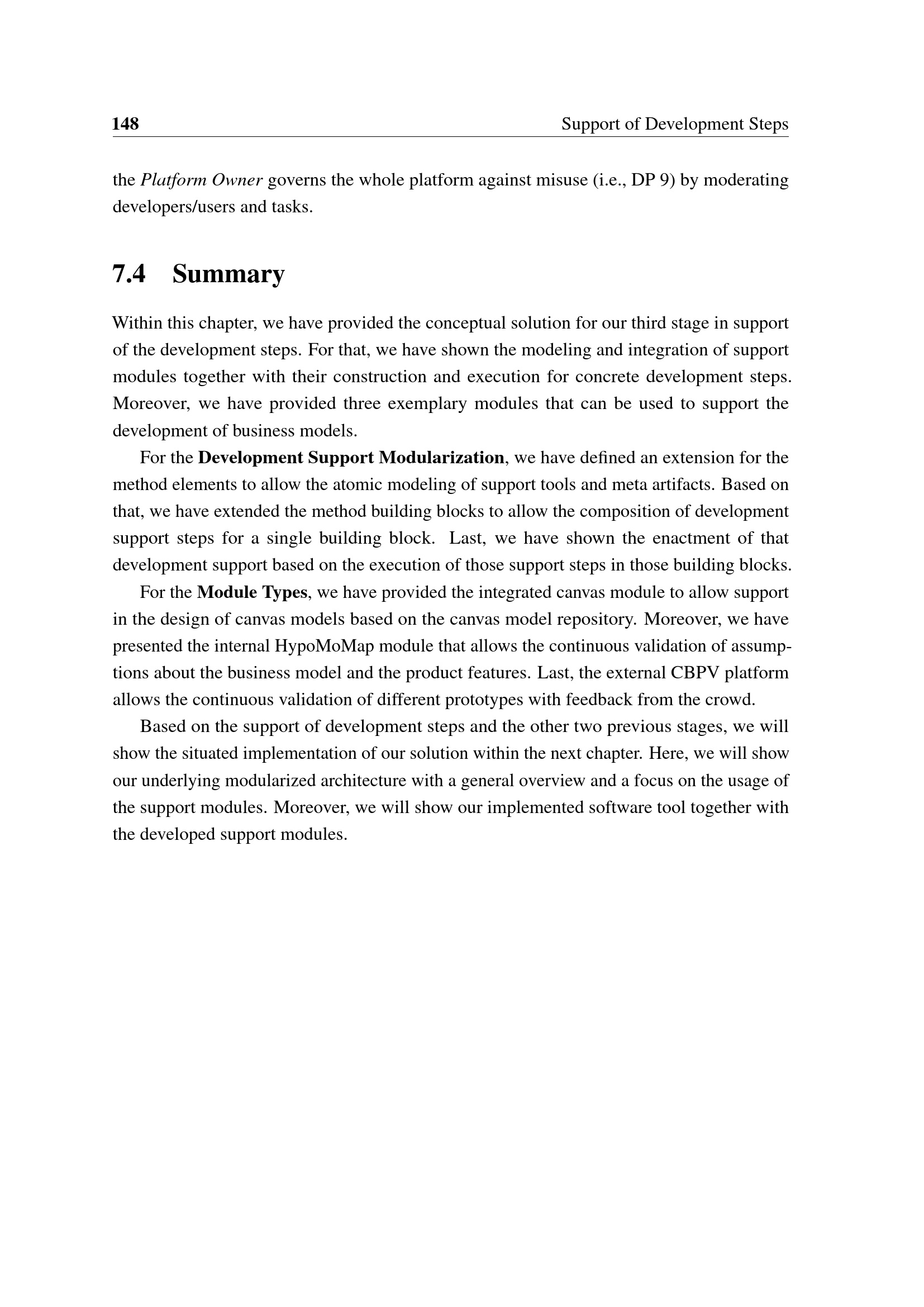 7 Support of Development Steps