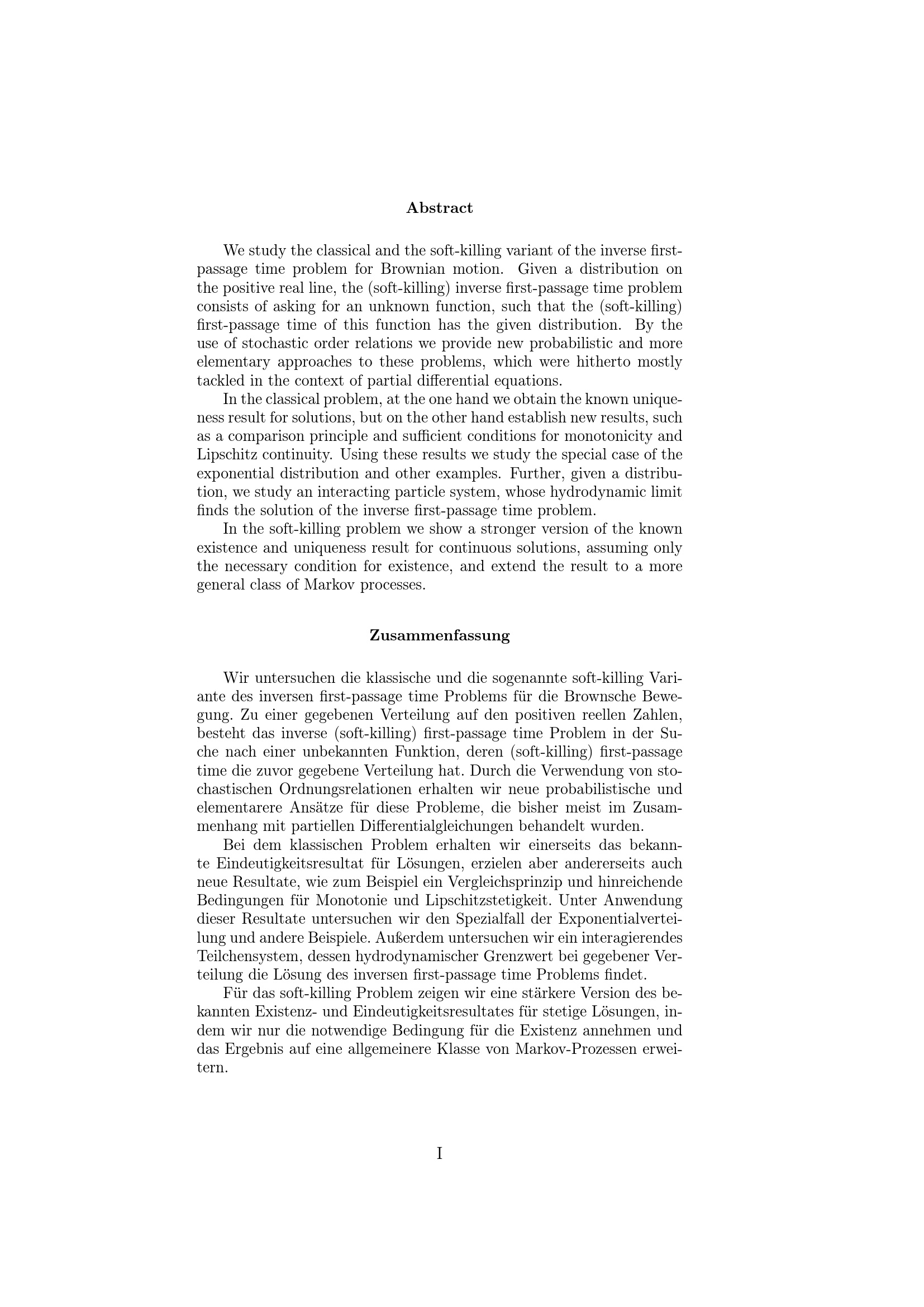 The classical and the soft-killing Inverse First-Passage Time Problem: a stochastic order approach / von Alexander Klump ; angefertigt unter der Betreuung von Prof. Dr. Martin Kolb