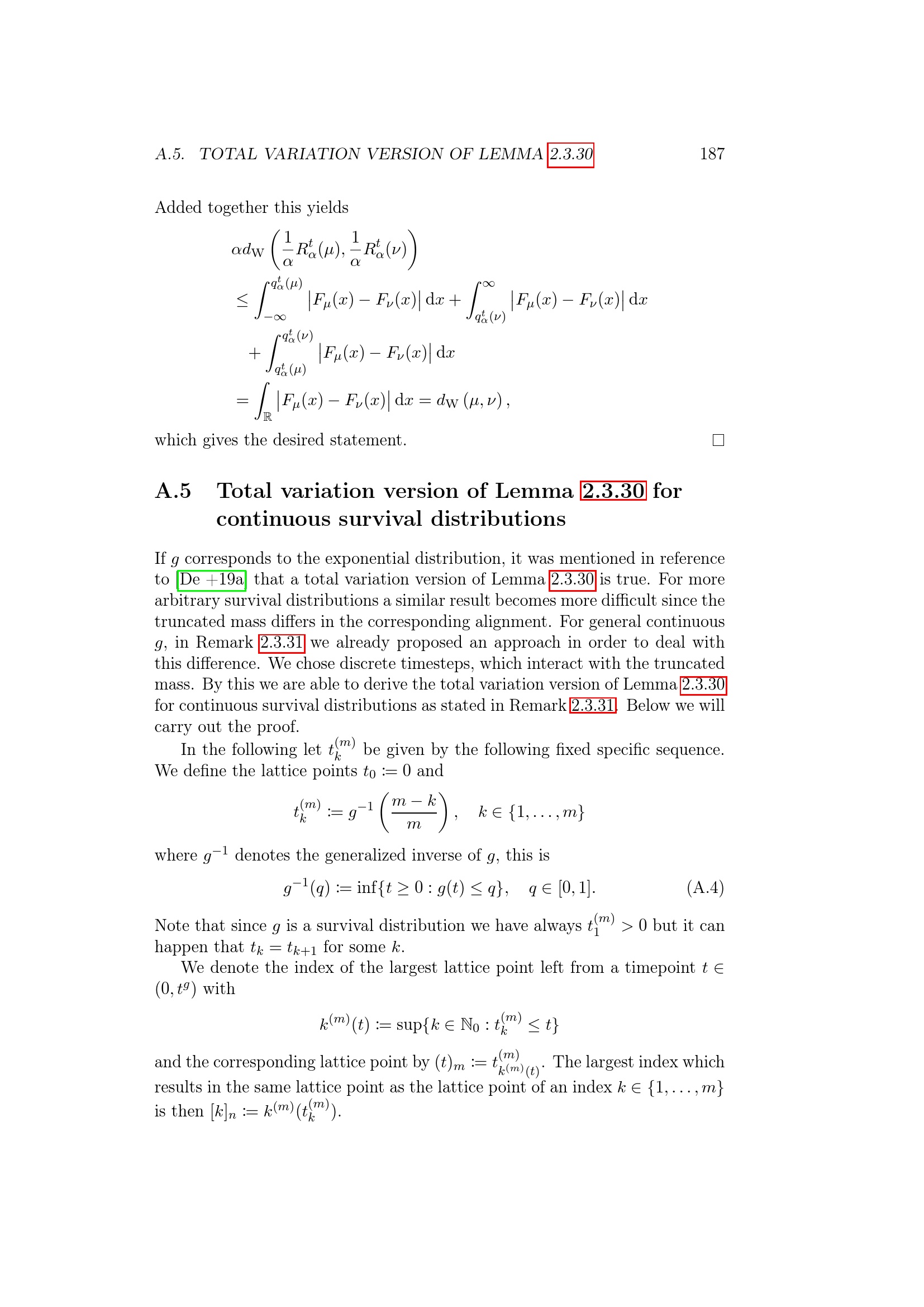 Total variation version of Lemma 2.3.30 for continuous survival distributions