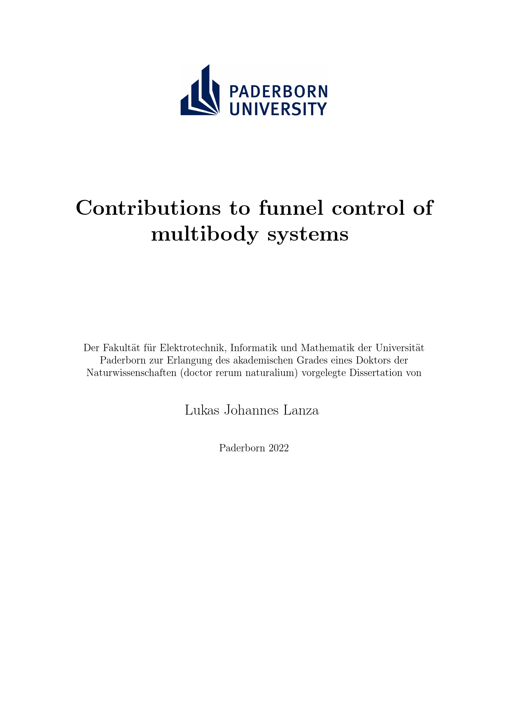 Contributions to funnel control of multibody systems / von Lukas Johannes Lanza