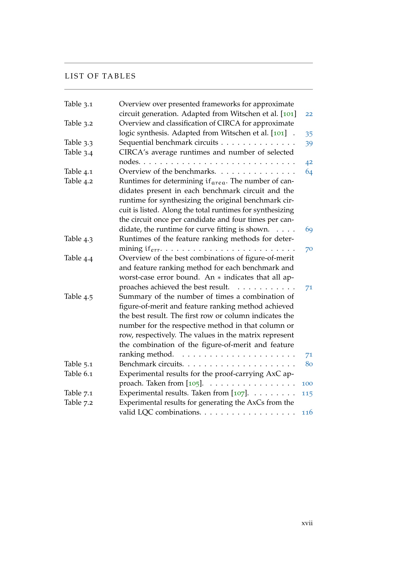 List of Tables