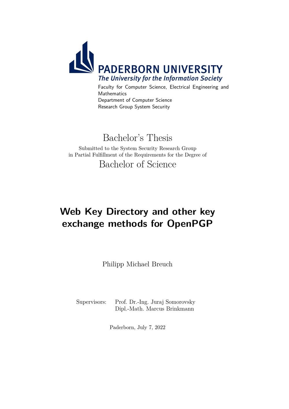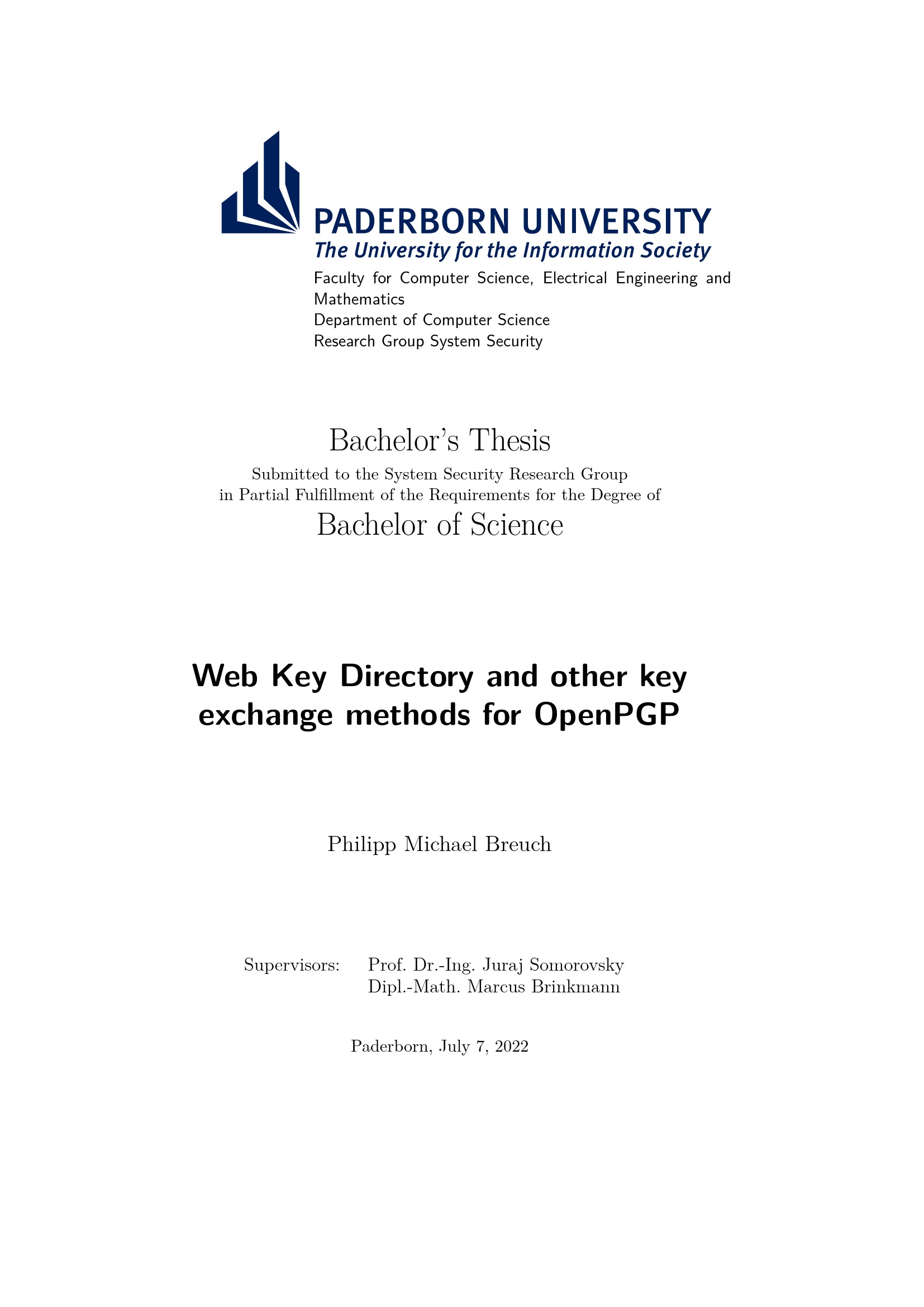 Web Key Directory and other key exchange methods for OpenPGP / Philipp Michael Breuch ; Supervisors: Prof. Dr.-Ing. Juraj Somorovsky, Dipl.-Math. Marcus Brinkmann