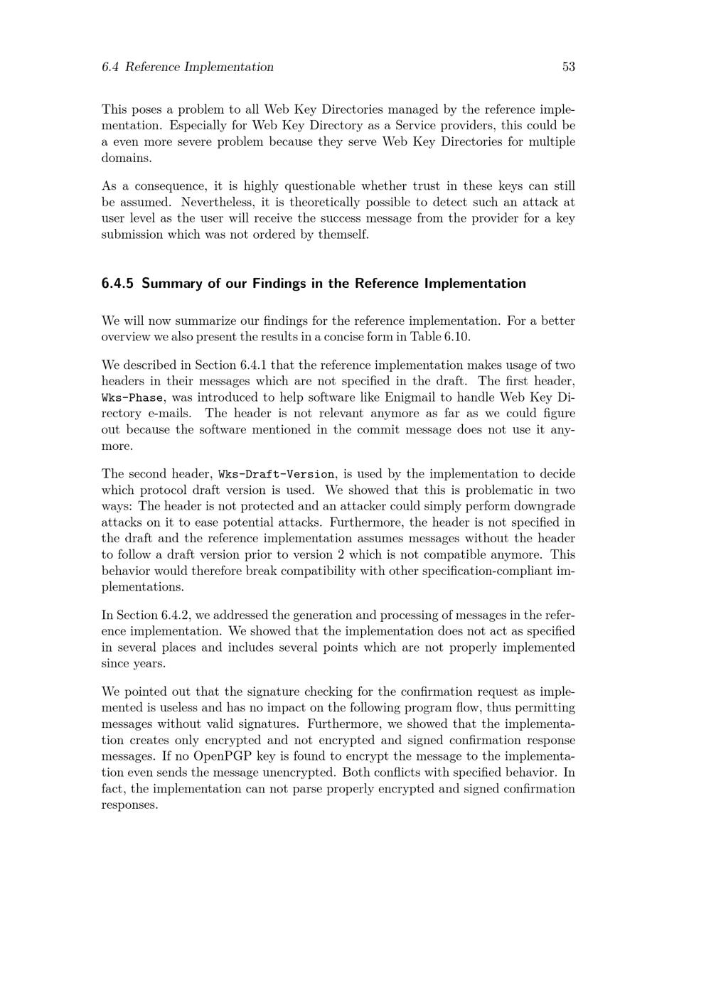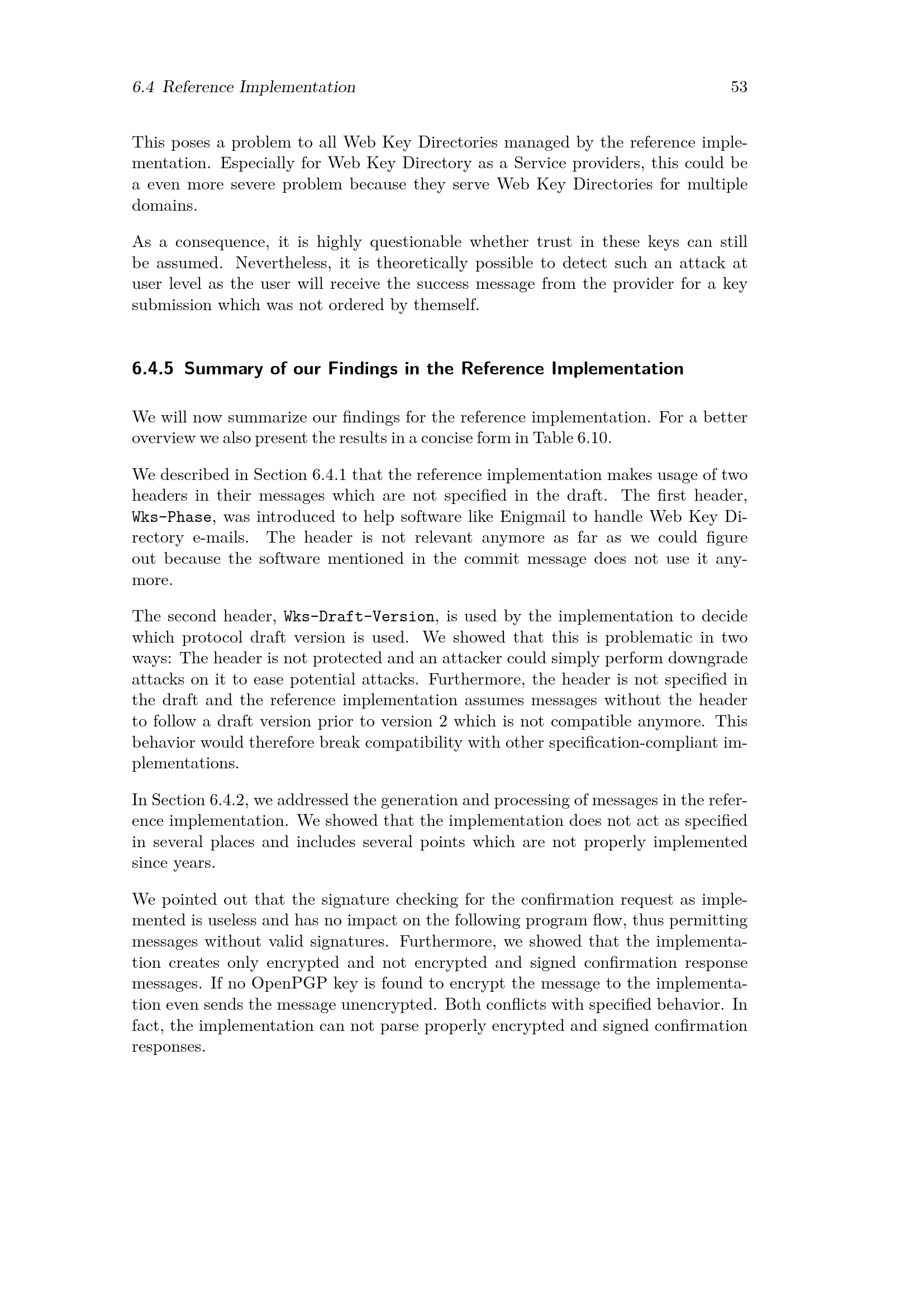 Summary of our Findings in the Reference Implementation