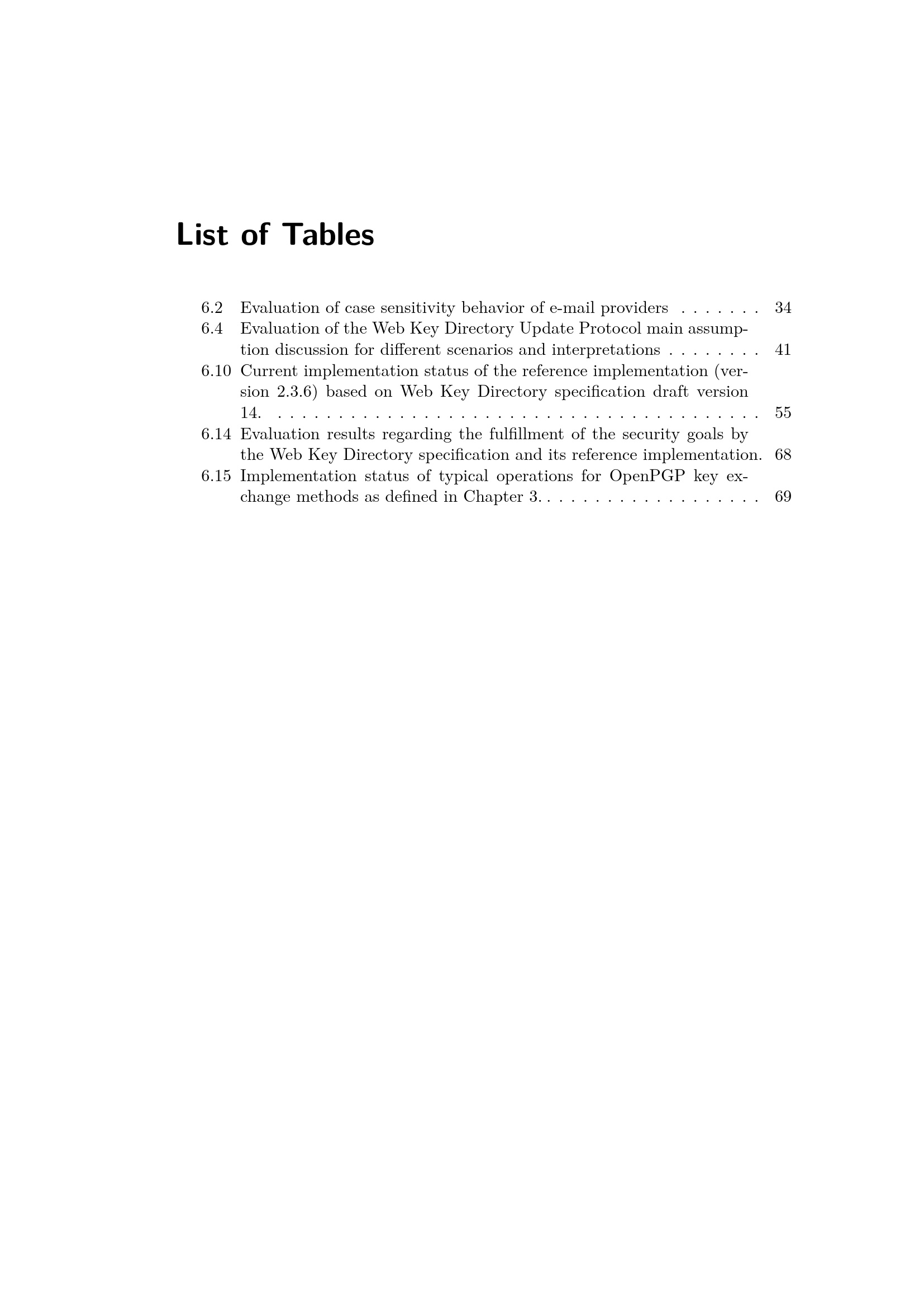 List of Tables