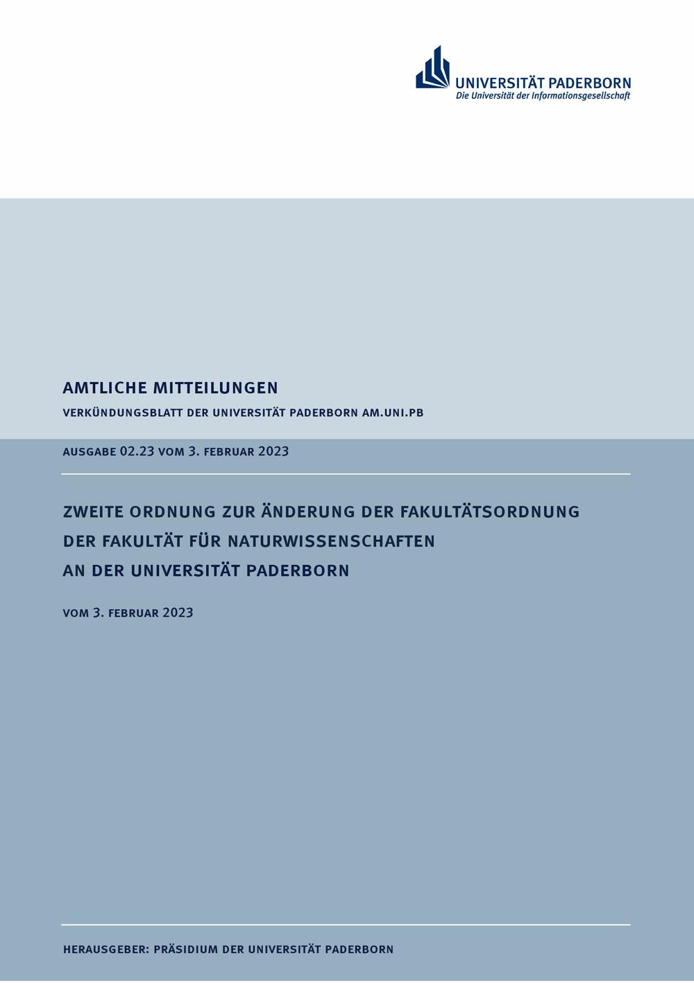 Zweite Ordnung zur Änderung der Fakultätsordnung der Fakultät für Naturwissenschaften an der Universität Paderborn : vom 3. Februar 2023