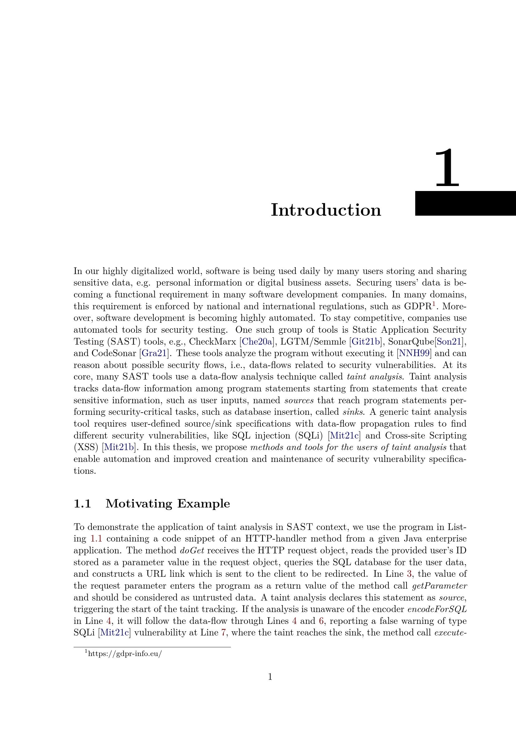 Adapting taint analyses for detecting security vulnerabilities / by Goran Piskachev ; Advisor: Prof. Dr. Eric Bodden