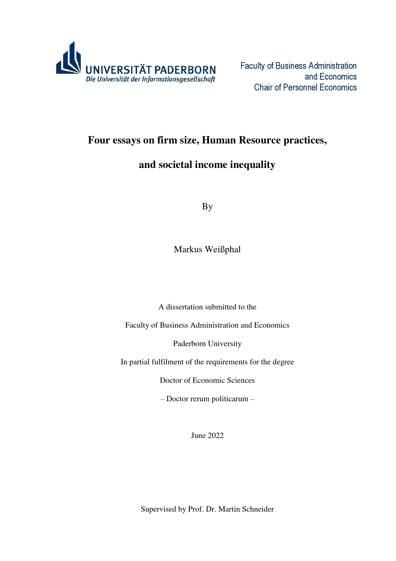 Four essays on firm size, Human Resource practices, and societal income inequality / by Markus Weißphal ; supervised by Prof. Dr. Martin Schneider