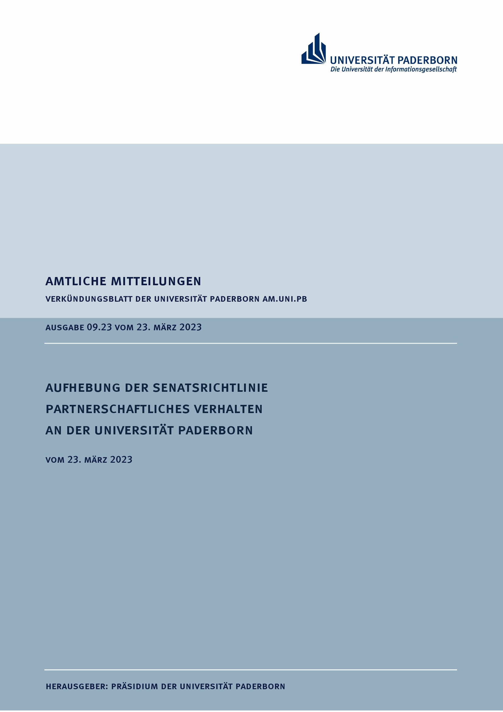Aufhebung der Senatsrichtlinie Partnerschaftliches Verhalten an der Universität Paderborn : vom 23. März 2023