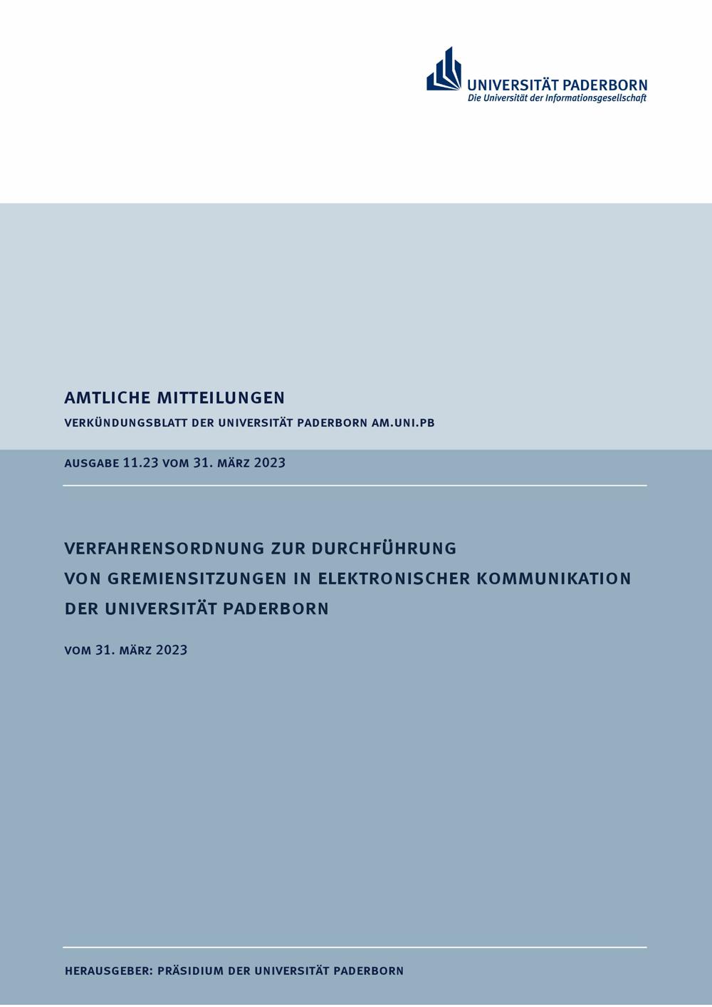 Verfahrensordnung zur Durchführung von Gremiensitzungen in elektronischer Kommunikation an der Universität Paderborn : vom 31. März 2023