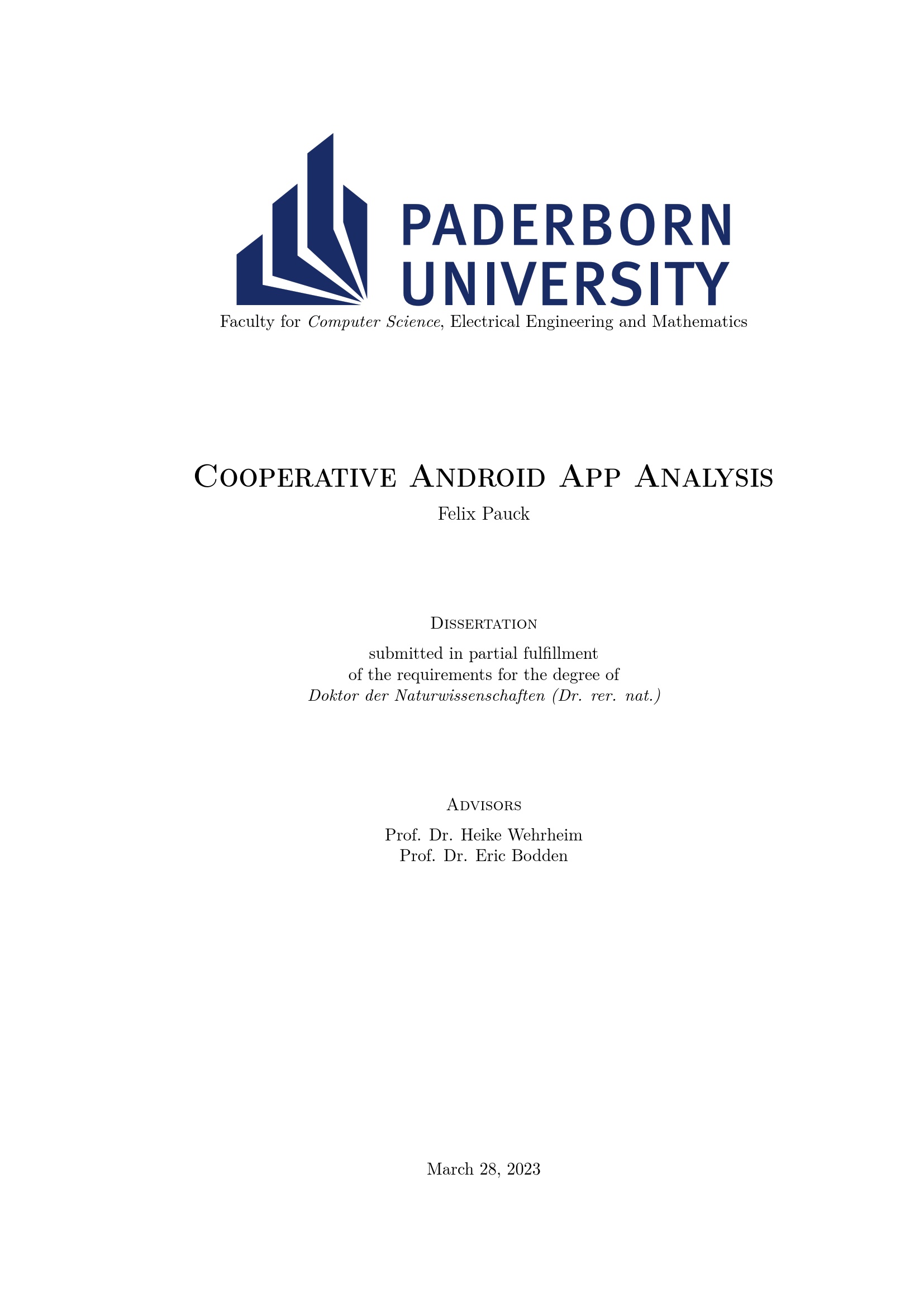 Cooperative Android App analysis / Felix Pauck ; advisors Prof. Dr. Heike Wehrheim, Prof. Dr. Eric Bodden