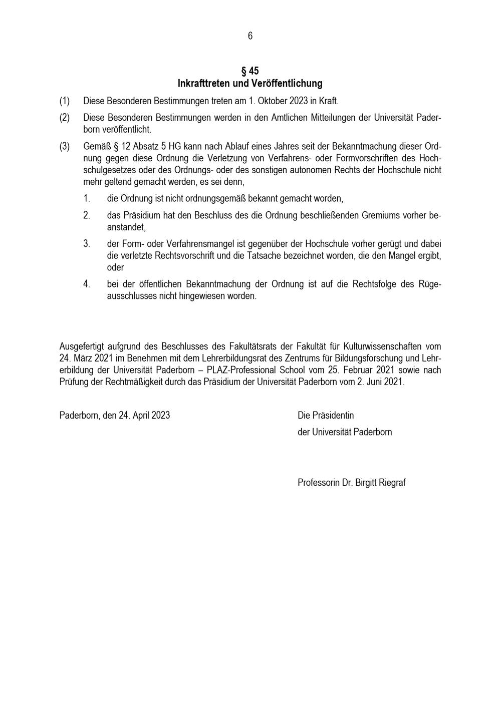 Besondere Bestimmungen der Prüfungsordnung für den Masterstudiengang Lehramt an Haupt-, Real-, Sekundar- und Gesamtschulen mit dem Unterrichtsfach Islamische Religionslehre an der Universität Paderborn : vom 24. April 2023