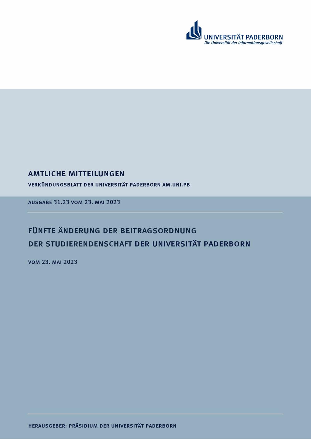 Fünfte Änderung der Beitragsordnung der Studierendenschaft der Universität Paderborn : vom 23. Mai 2023