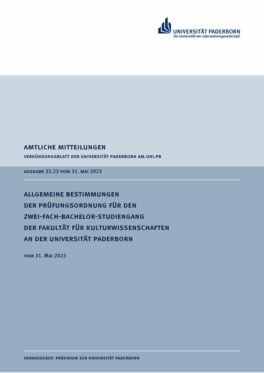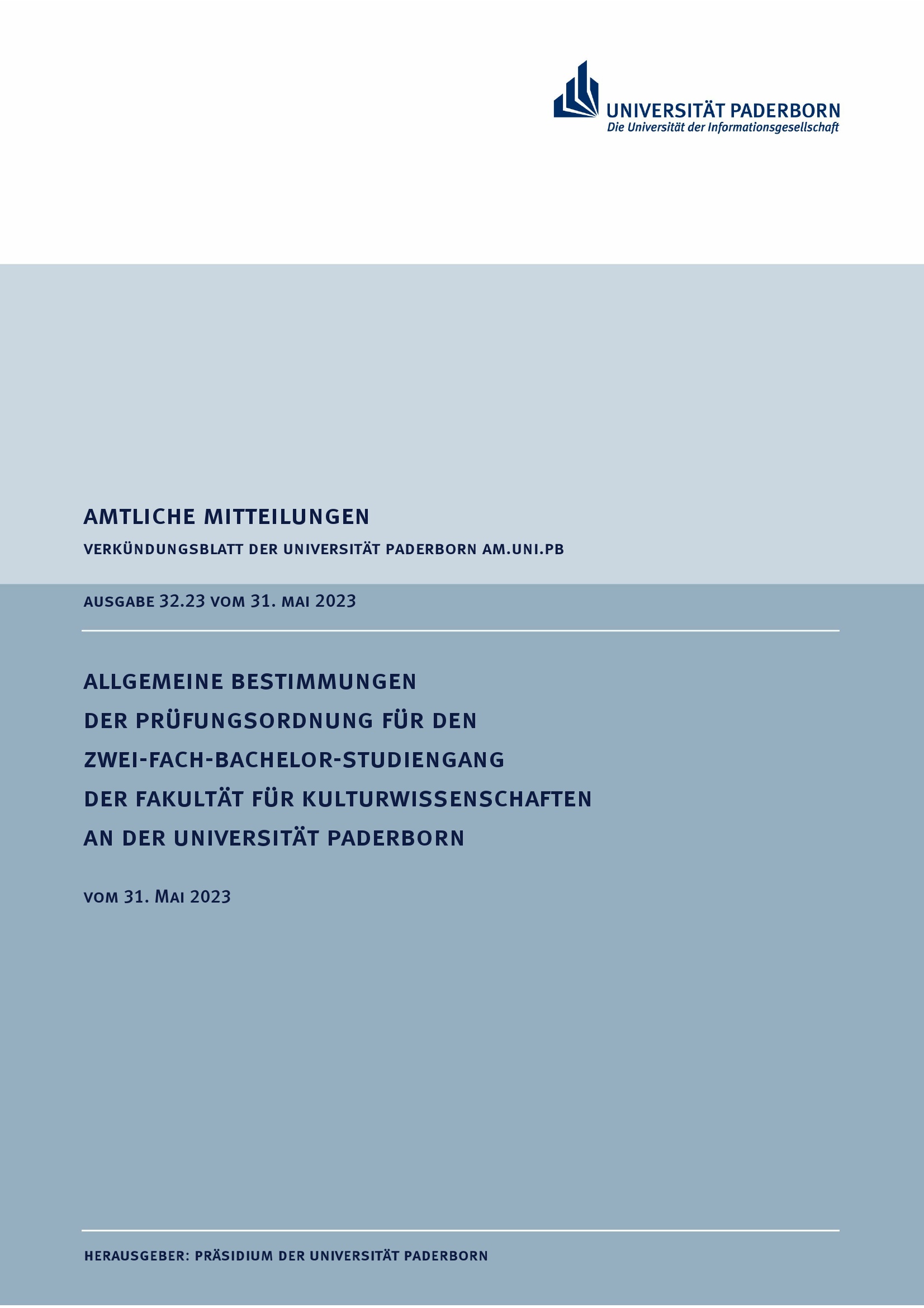Allgemeine Bestimmungen der Prüfungsordnung für den Zwei-Fach-Bachelor-Studiengang der Fakultät für Kulturwissenschaften an der Universität Paderborn : vom 31. Mai 2023