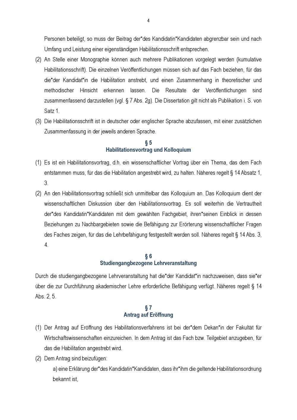 Habilitationsordnung der Fakultät für Wirtschaftswissenschaften der Universität [...]